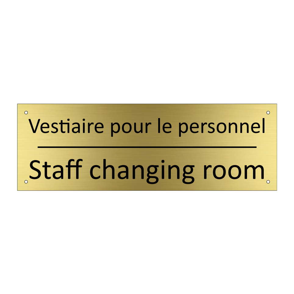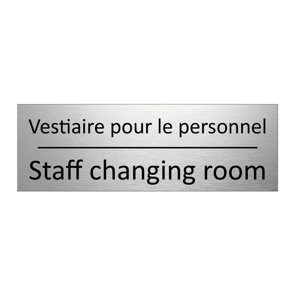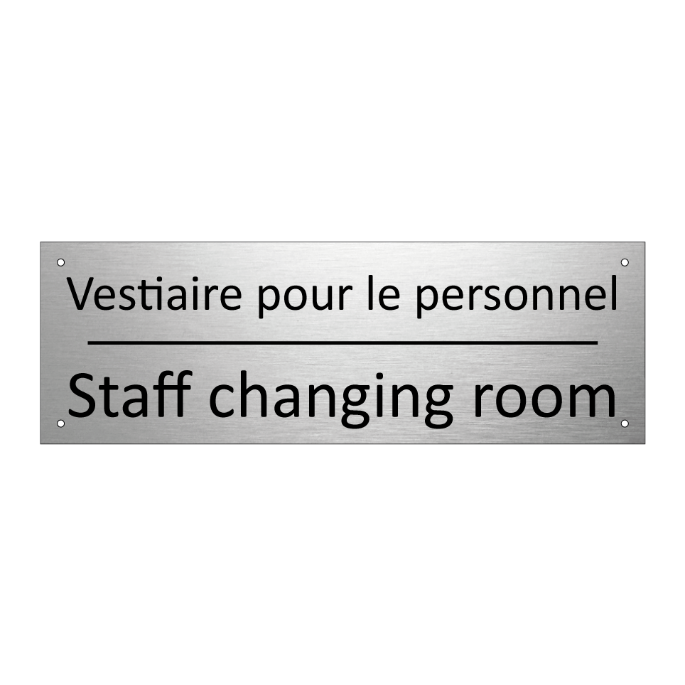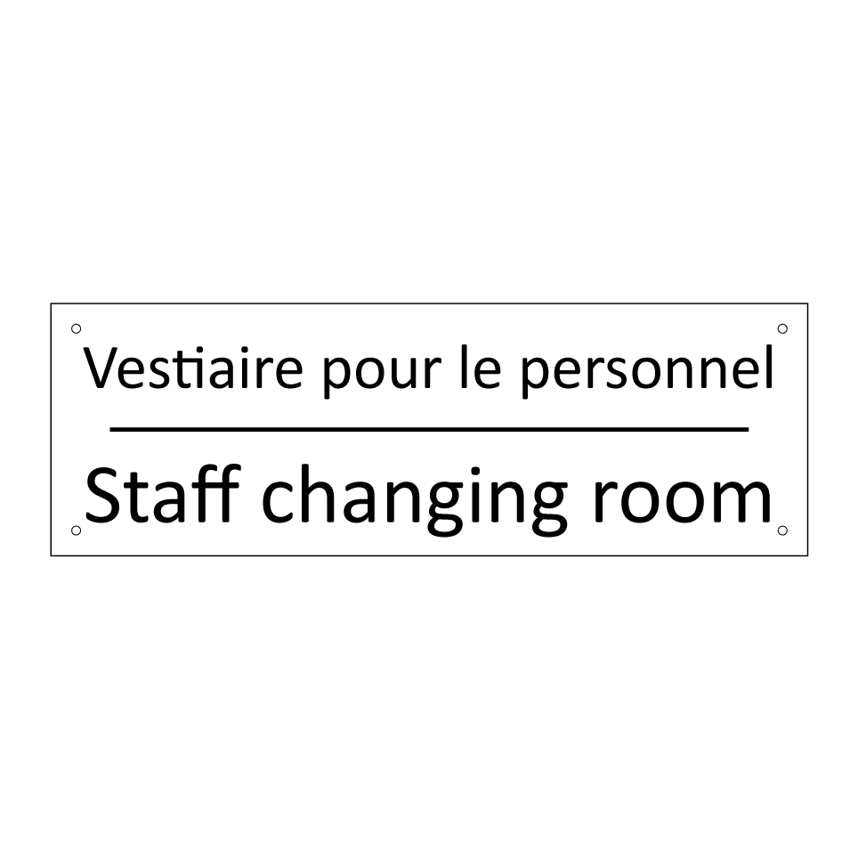 Panneau d'information avec le texte Vestiaire pour le personnel|Staff changing room en français et en anglais.