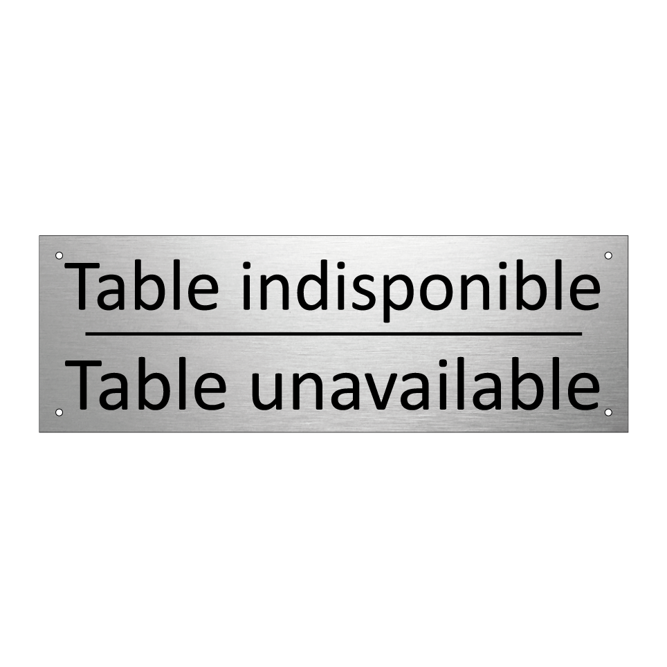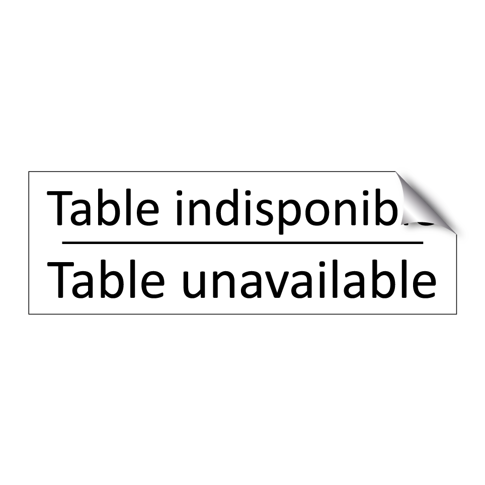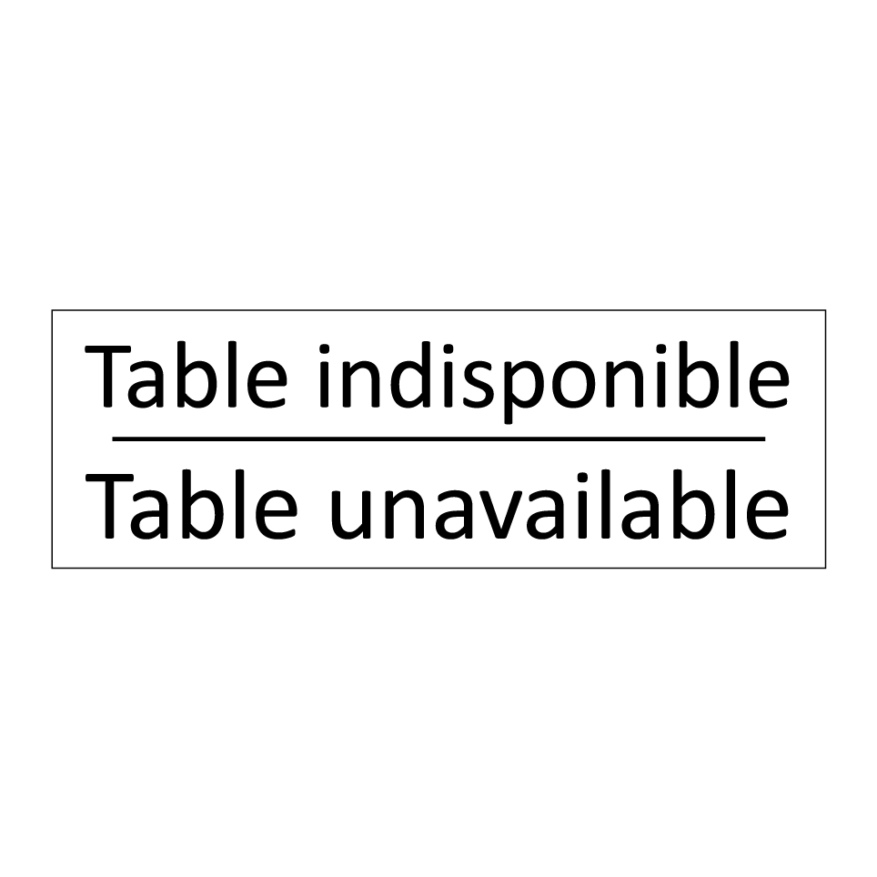 Panneau d'information avec le texte Table indisponible|Table unavailable en français et en anglais.