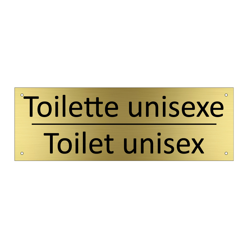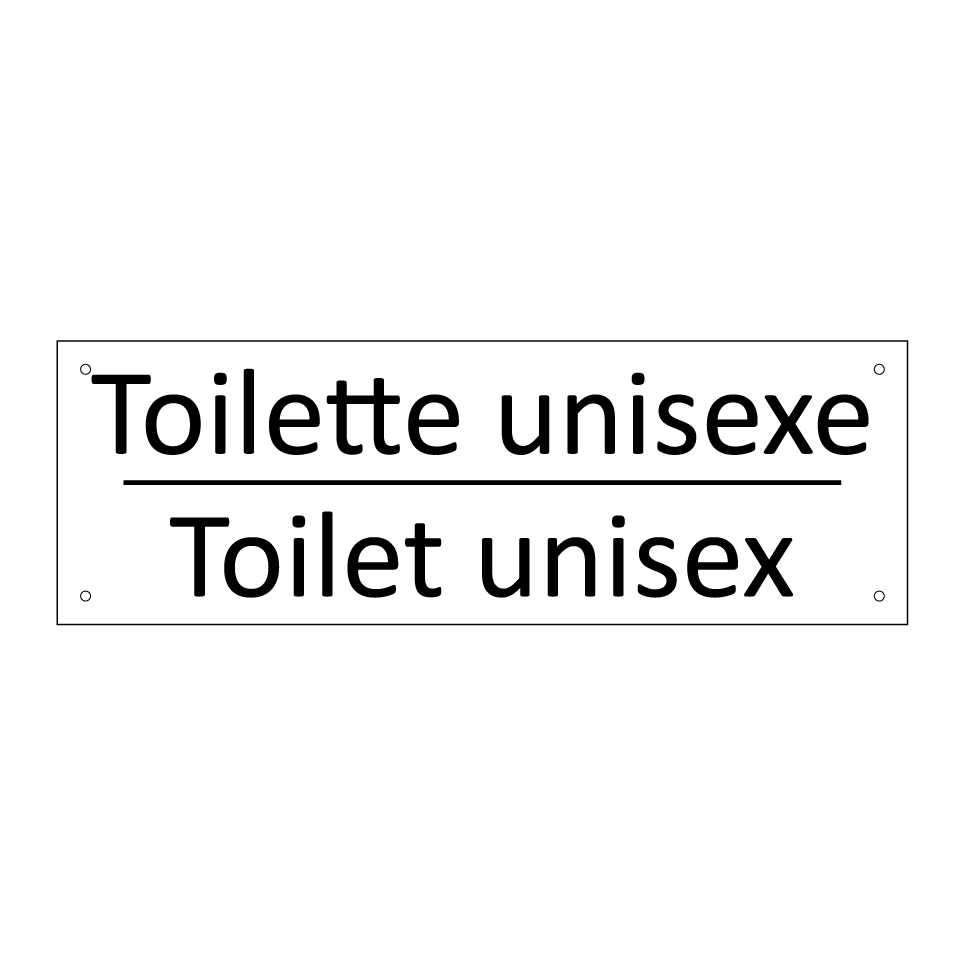 Panneau d'information avec le texte Toilette unisexe|Toilet unisex en français et en anglais.