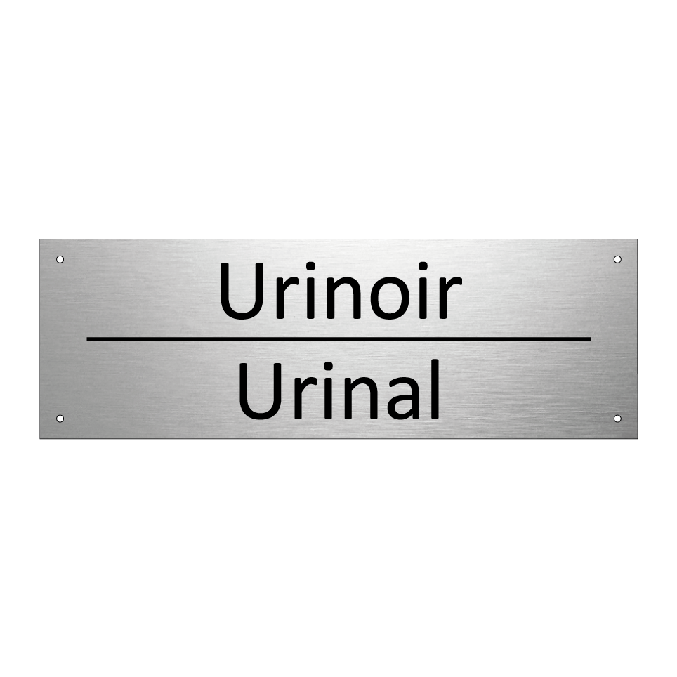 Panneau d'information avec le texte Urinoir|Urinal en français et en anglais.
