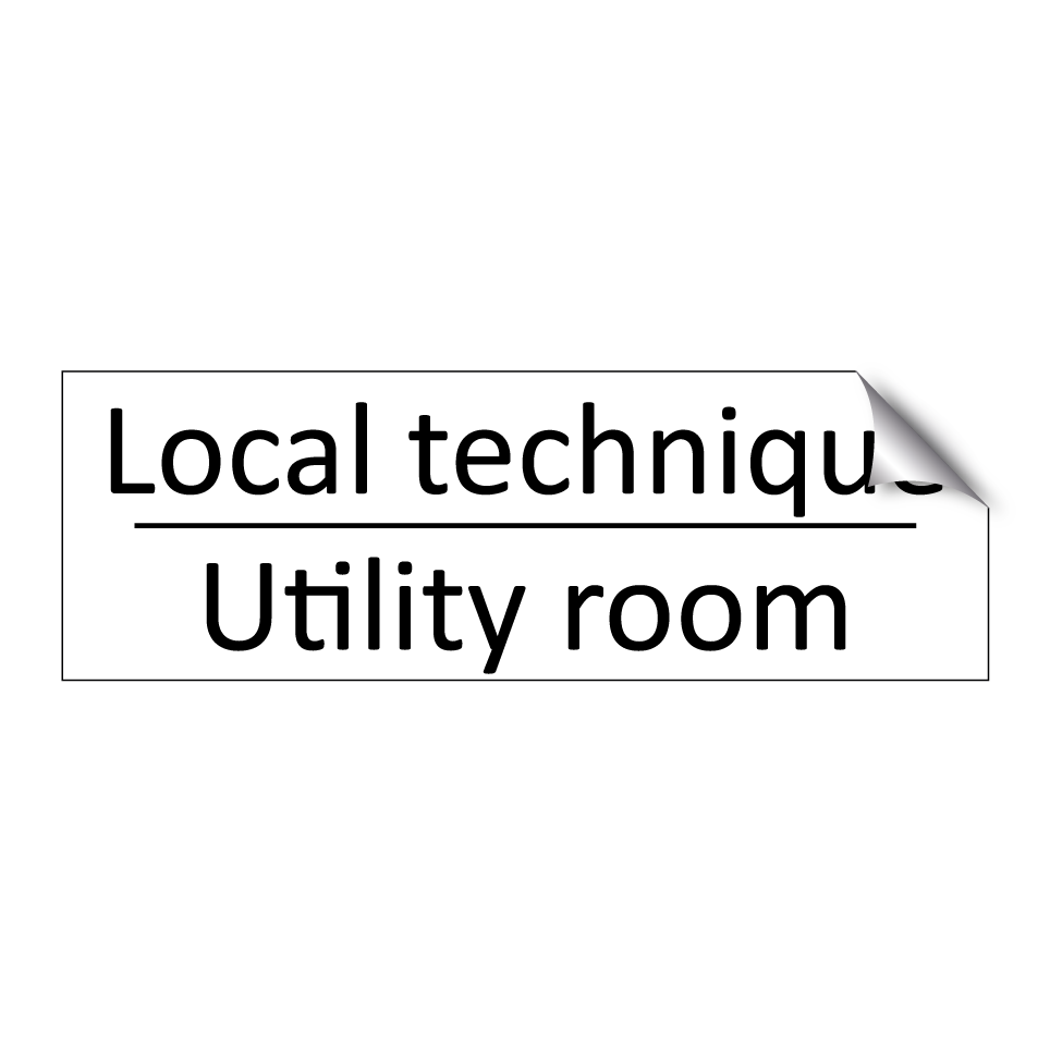 Panneau d'information avec le texte Local technique|Utility room en français et en anglais.