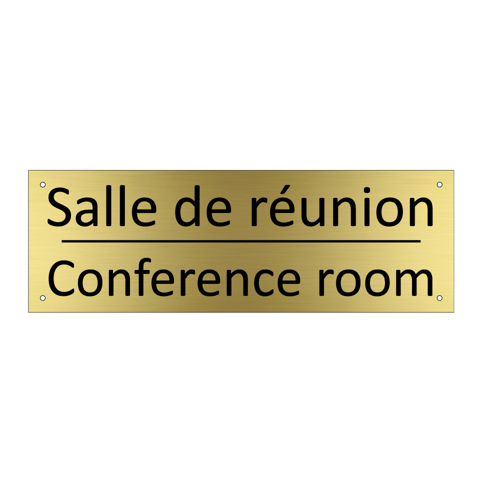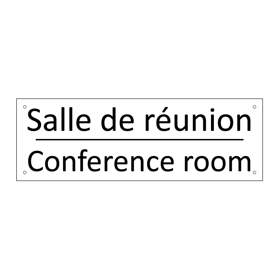 Panneau d'information avec le texte Salle de réunion|Conference room en français et en anglais.