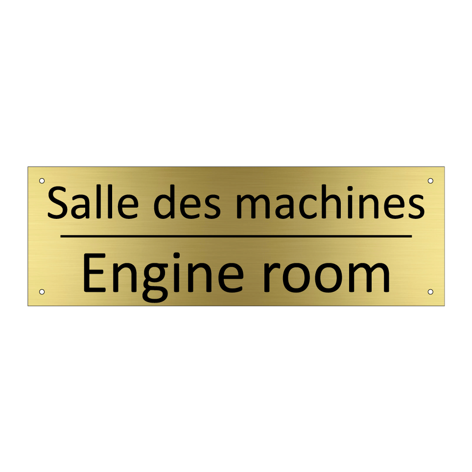 Panneau d'information avec le texte Salle des machines|Engine room en français et en anglais.