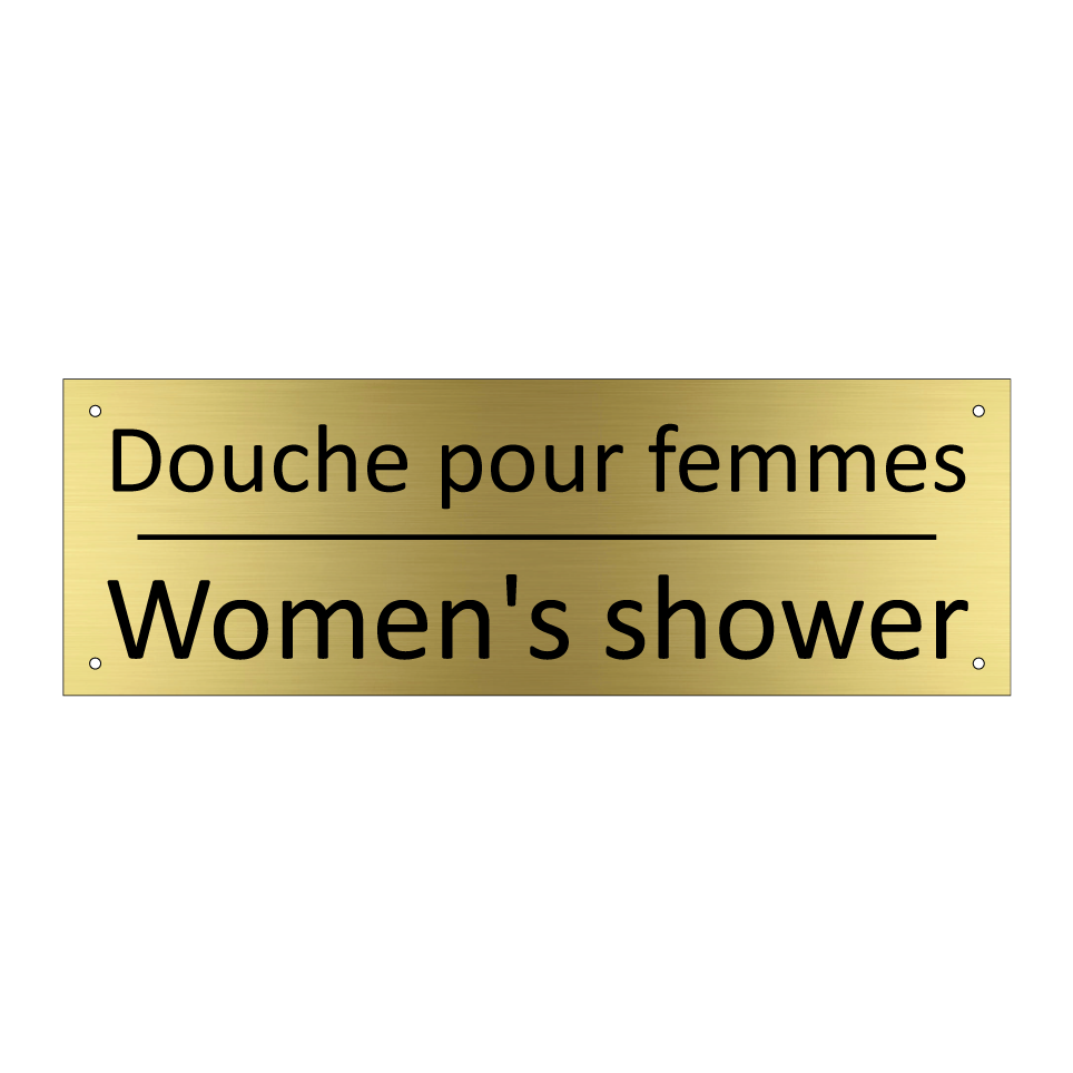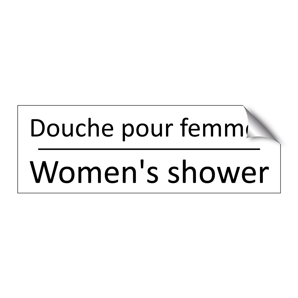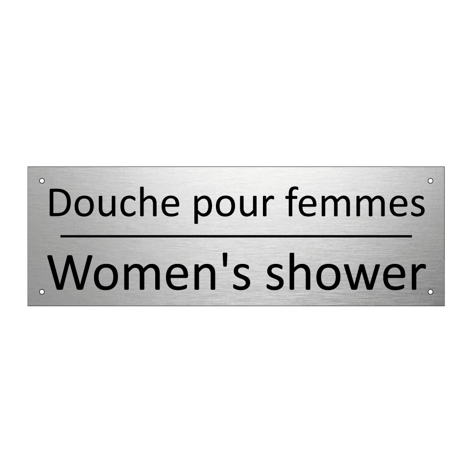 Panneau d'information avec le texte Douche pour femmes|Women's shower en français et en anglais.