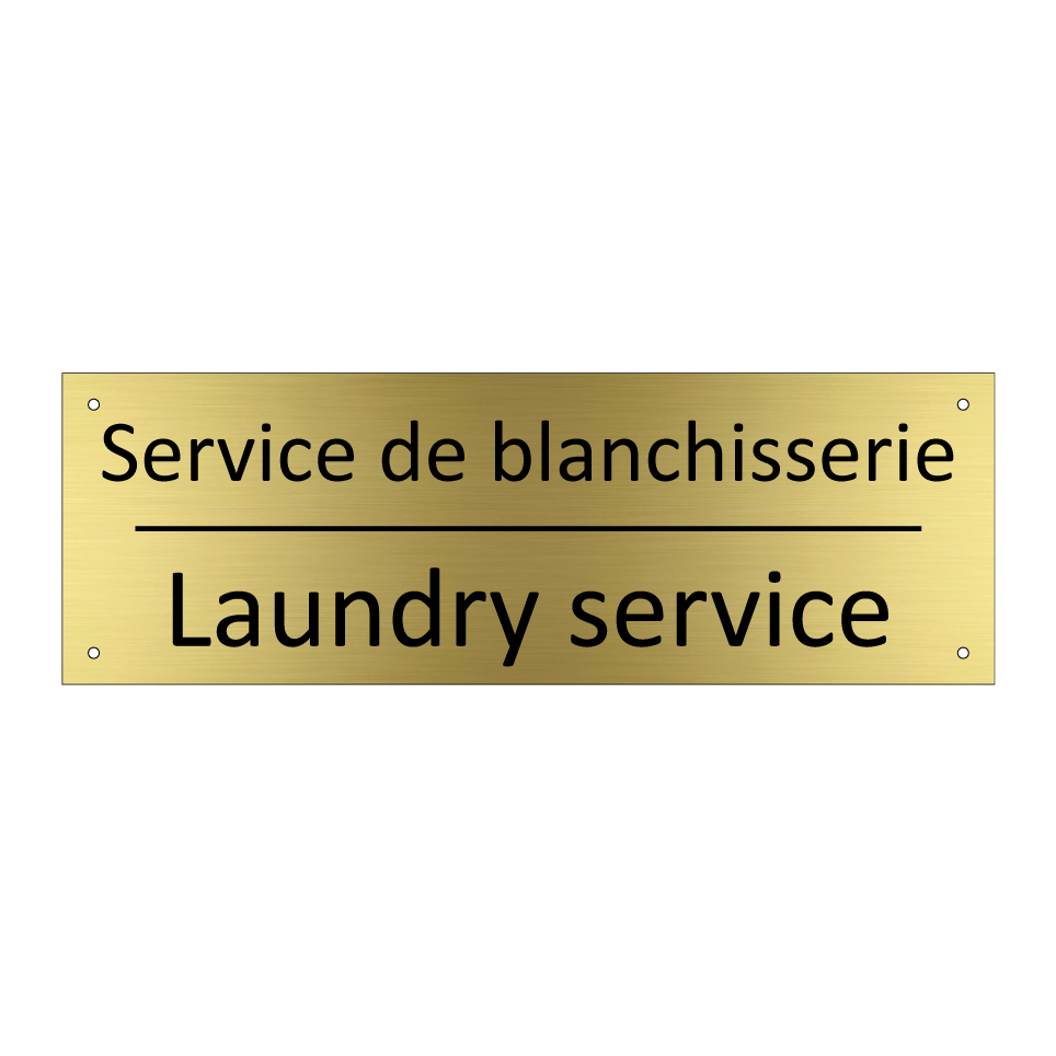 Panneau d'information avec le texte Service de blanchisserie|Laundry service en français et en anglais.