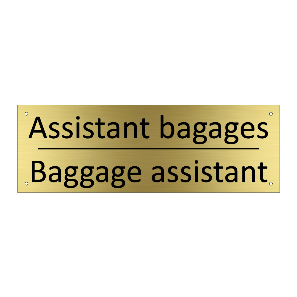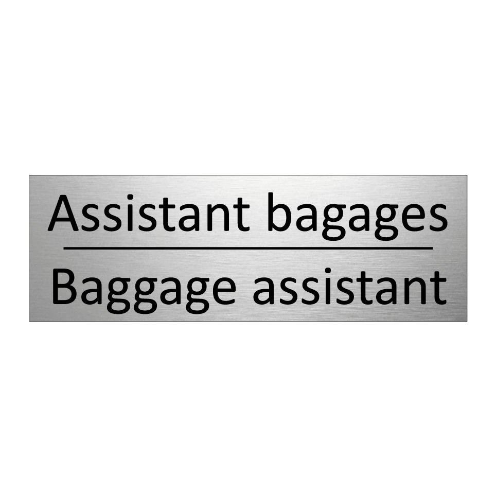 Panneau d'information avec le texte Assistant bagages|Baggage assistant en français et en anglais.