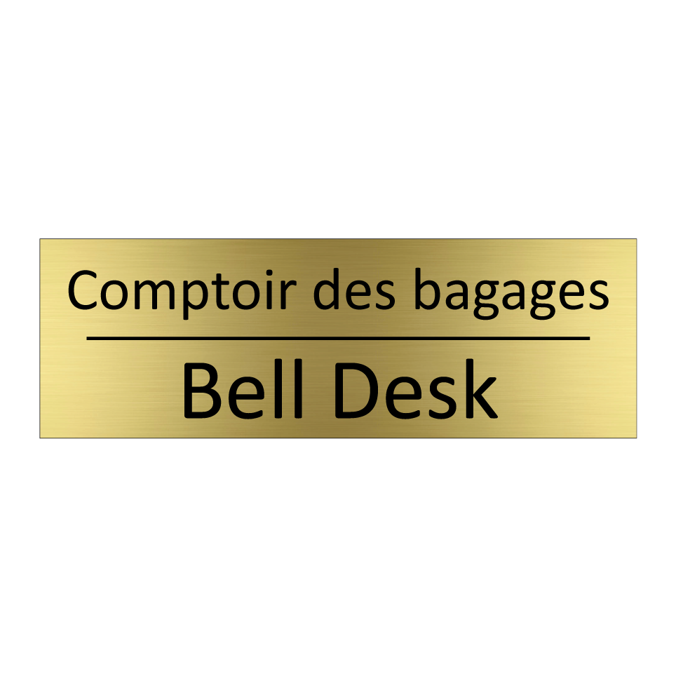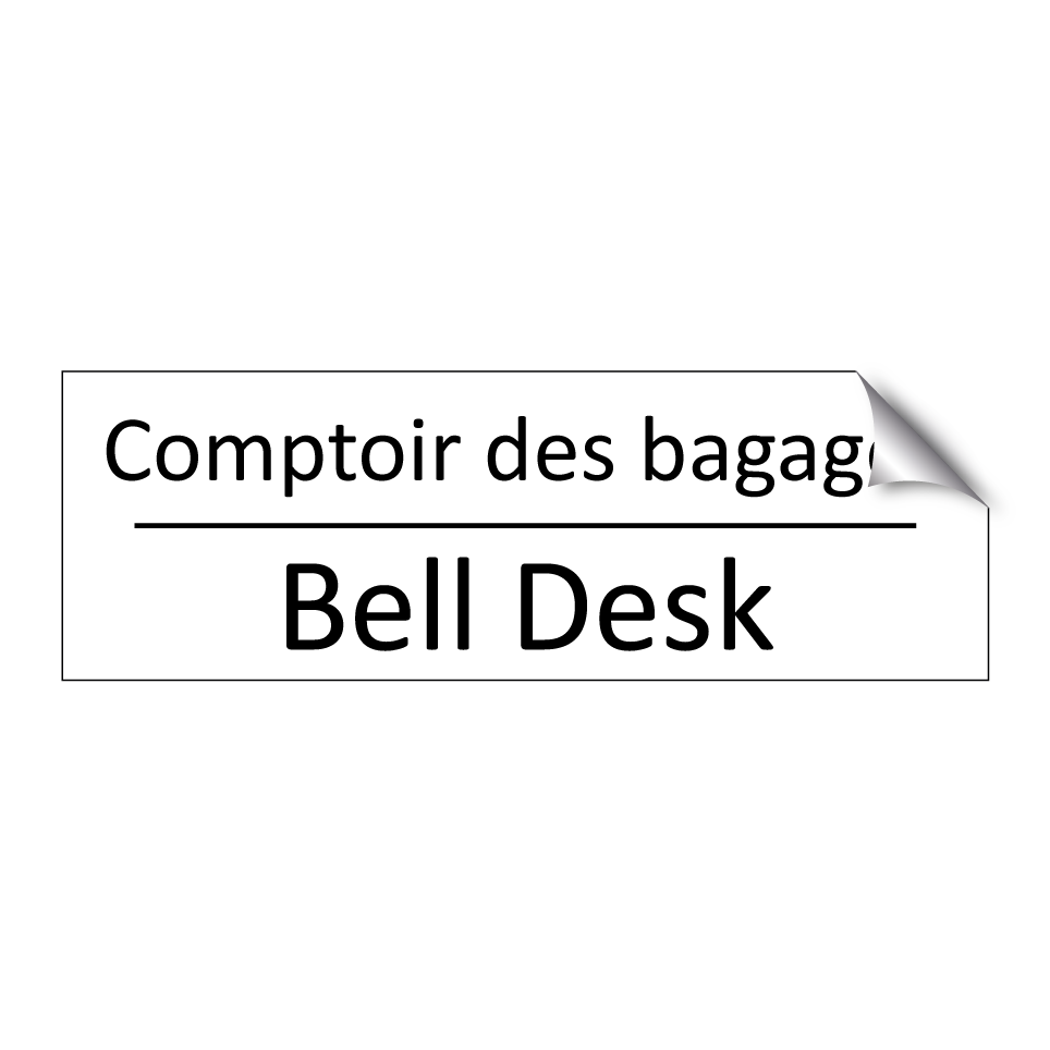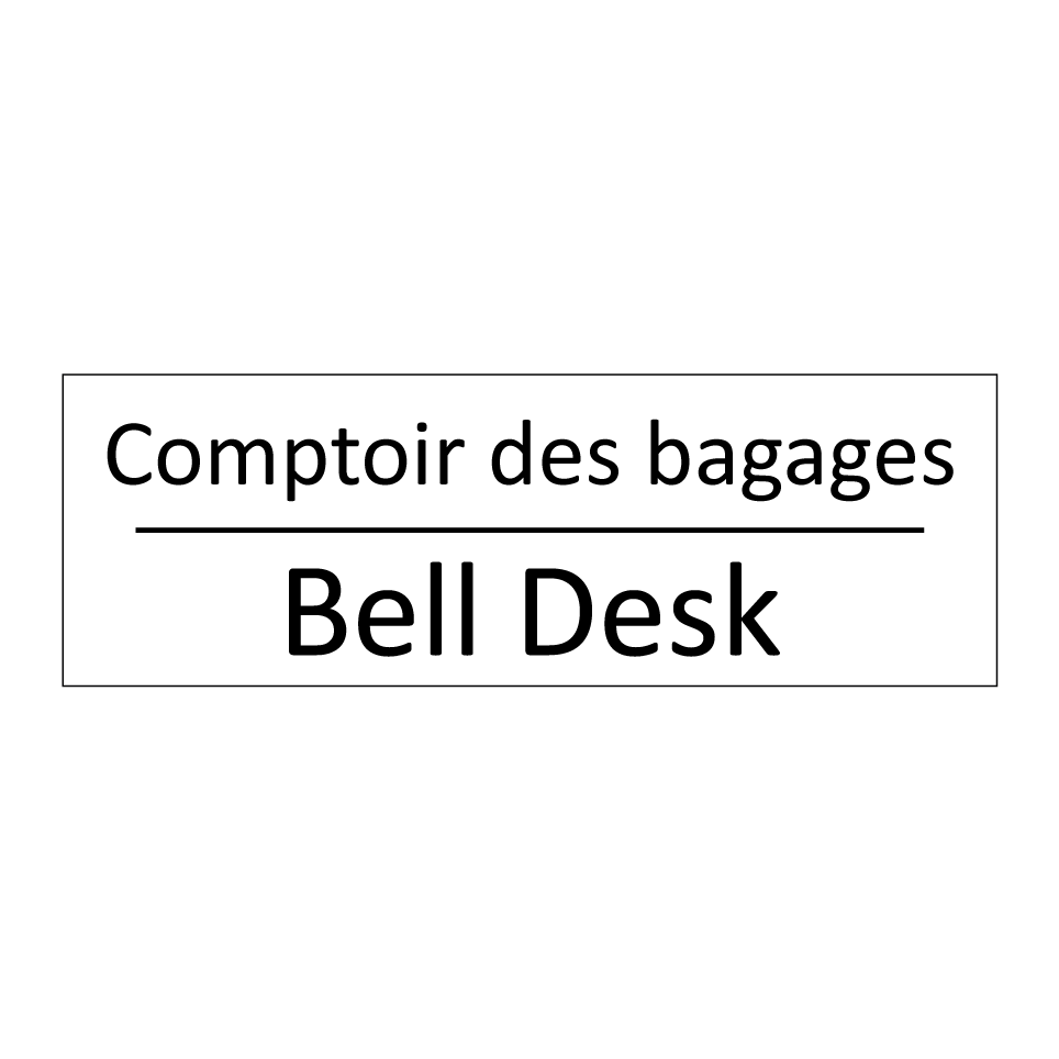 Panneau d'information avec le texte Comptoir des bagages|Bell Desk en français et en anglais.