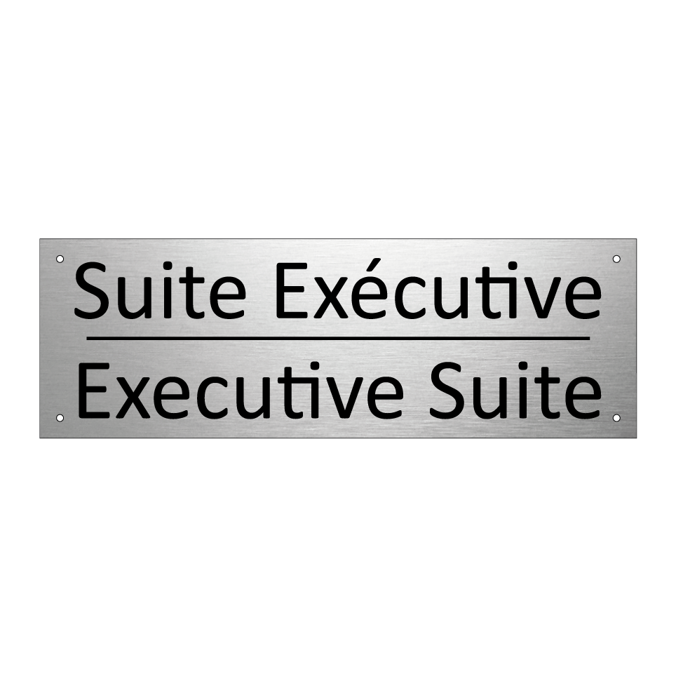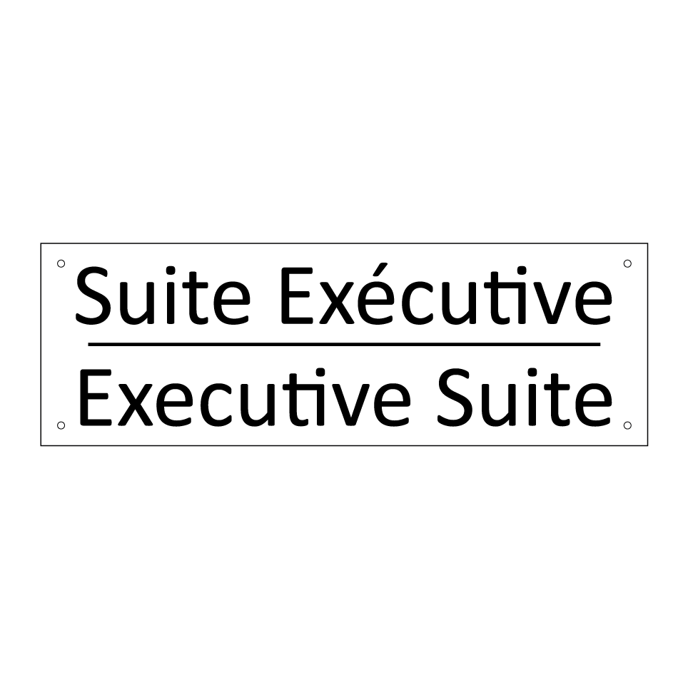 Panneau d'information avec le texte Suite Exécutive|Executive Suite en français et en anglais.