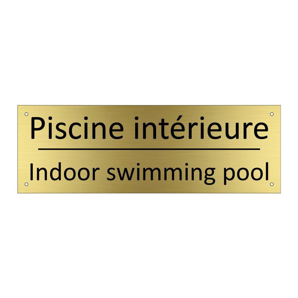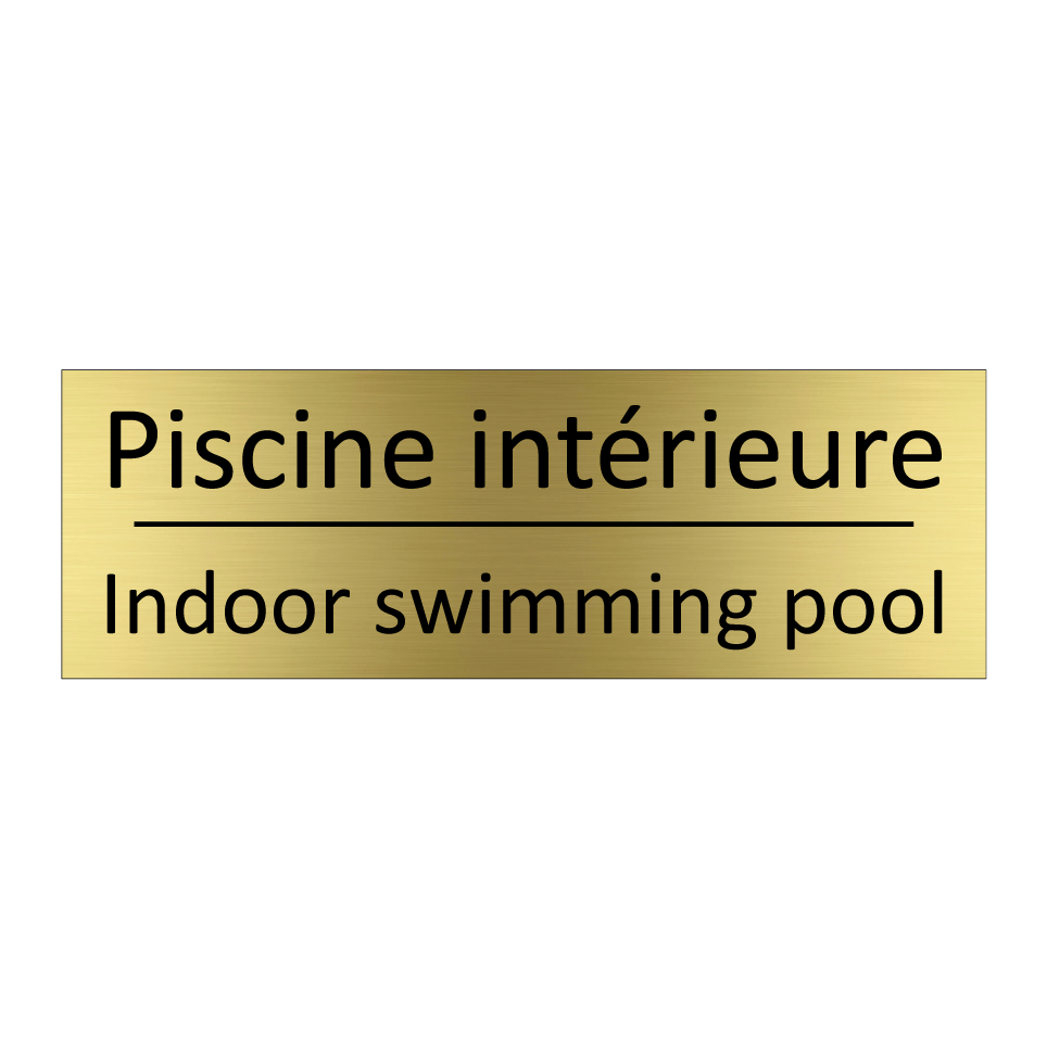 Panneau d'information avec le texte Piscine intérieure|Indoor swimming pool en français et en anglais.