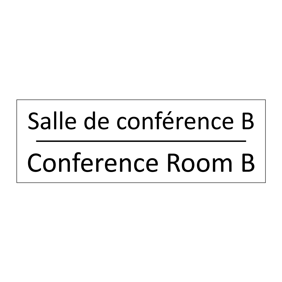 Panneau d'information avec le texte Salle de conférence B|Conference Room B en français et en anglais.