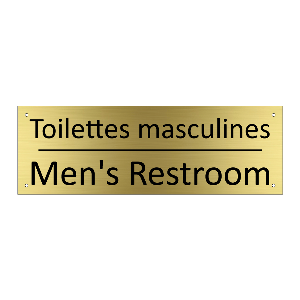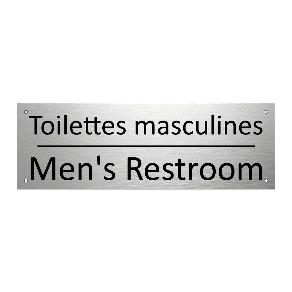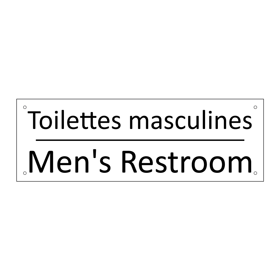 Panneau d'information avec le texte Toilettes masculines|Men's Restroom en français et en anglais.