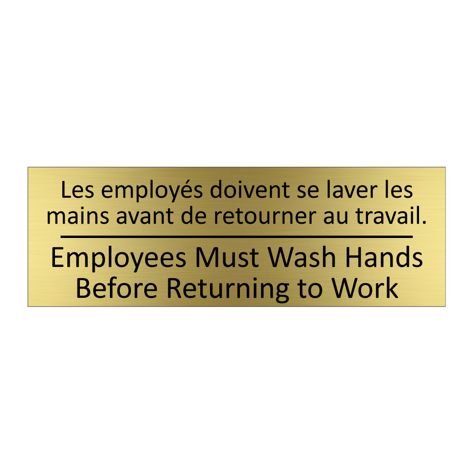 Panneau d'information avec le texte Les employés doivent se laver les mains avant de retourner au travail.|Employees Must Wash Hands Before Returning to Work en français et en anglais.