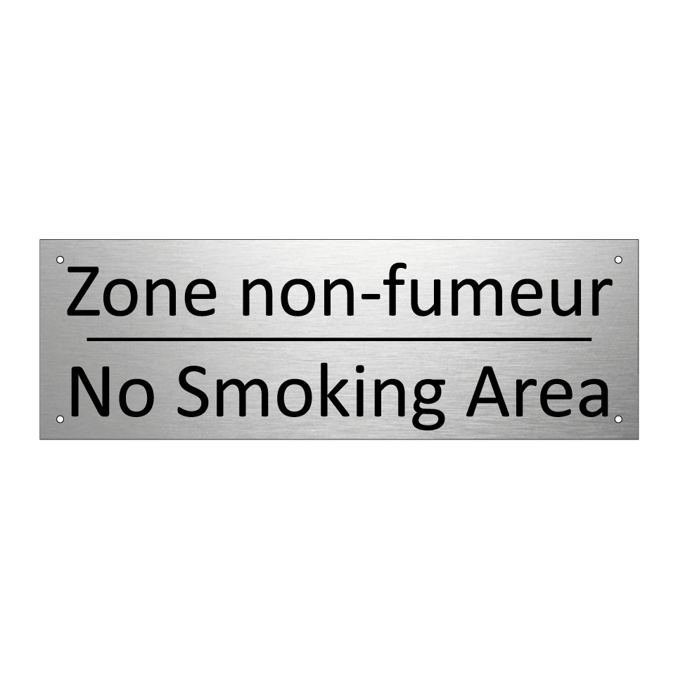 Panneau d'information avec le texte Zone non-fumeur|No Smoking Area en français et en anglais.