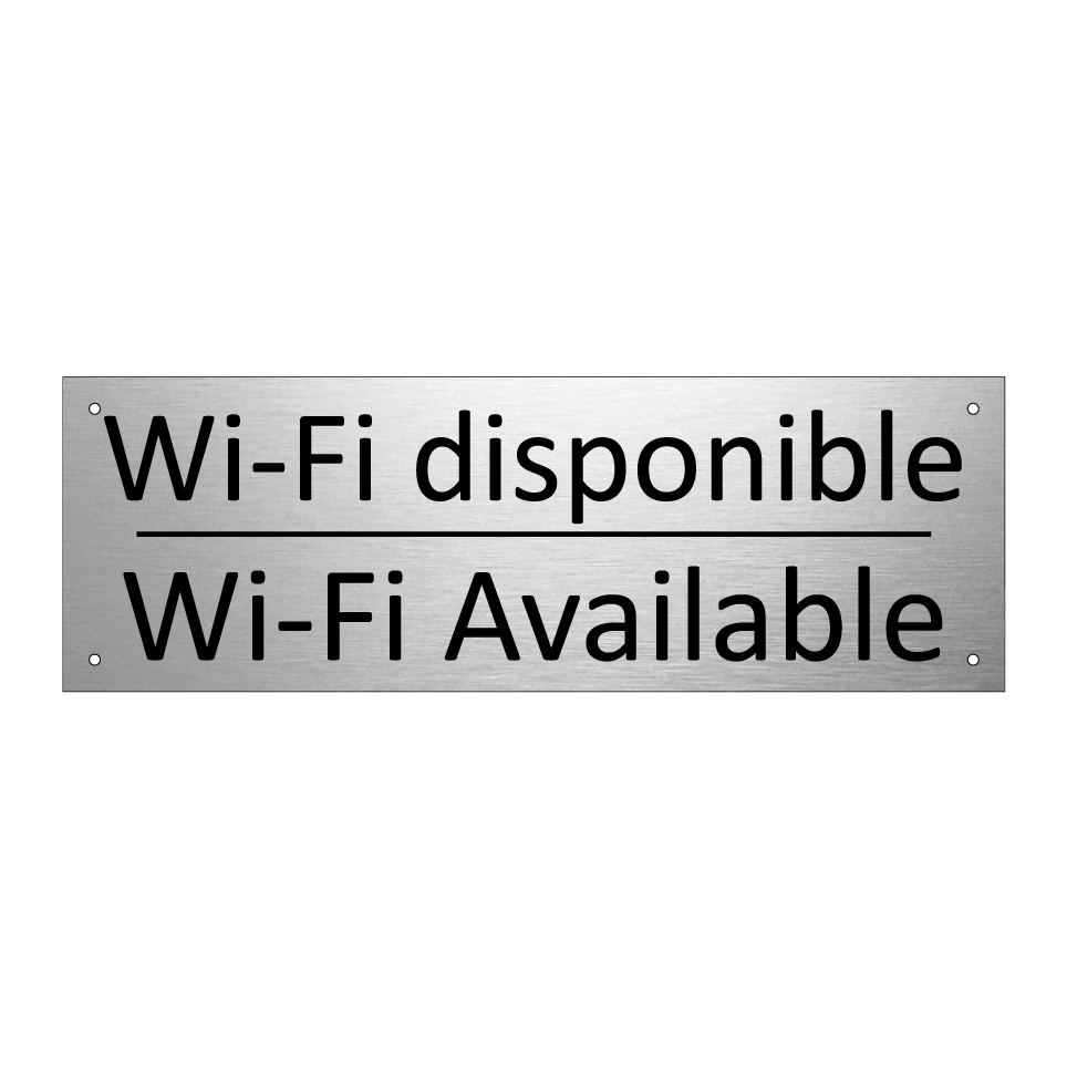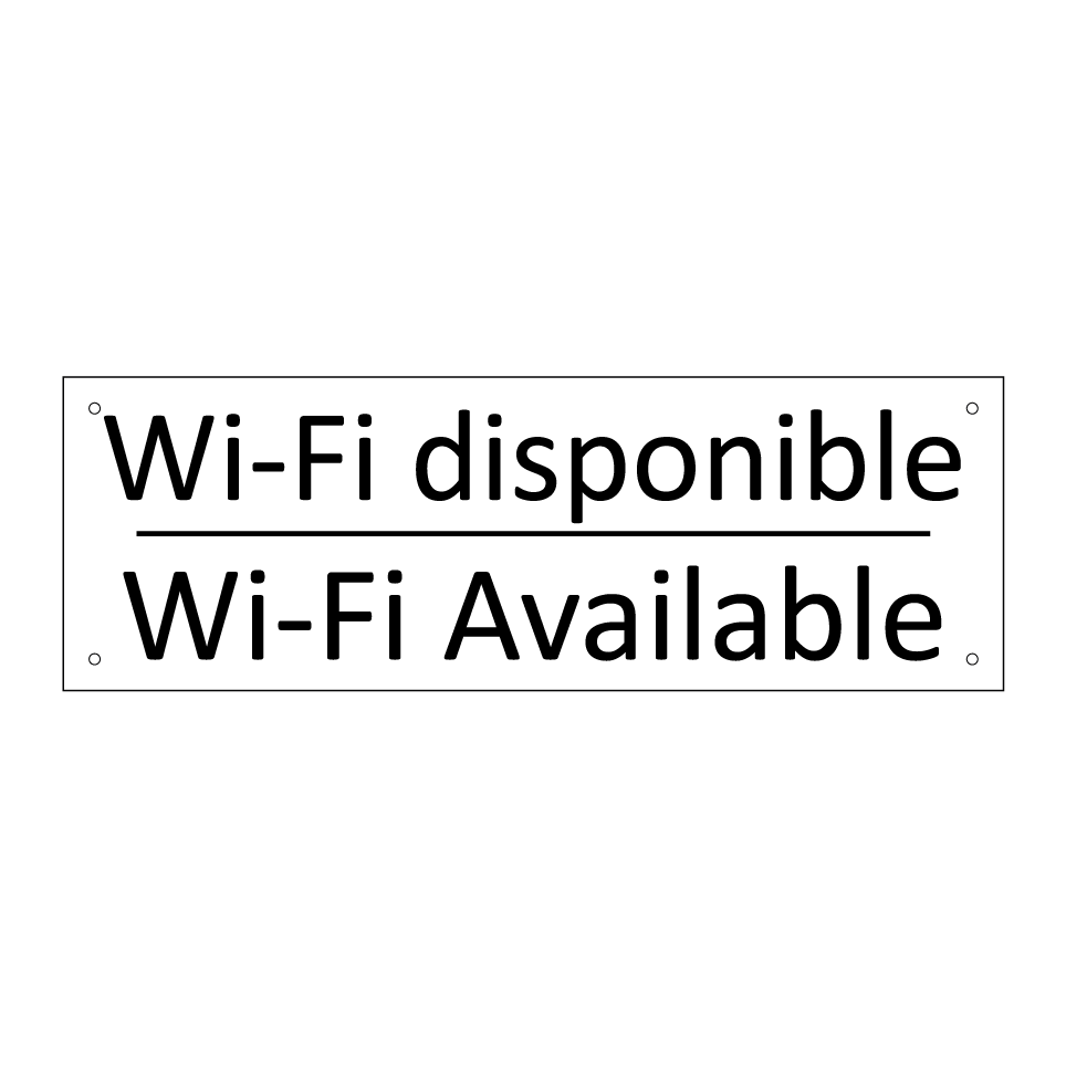 Panneau d'information avec le texte Wi-Fi disponible|Wi-Fi Available en français et en anglais.