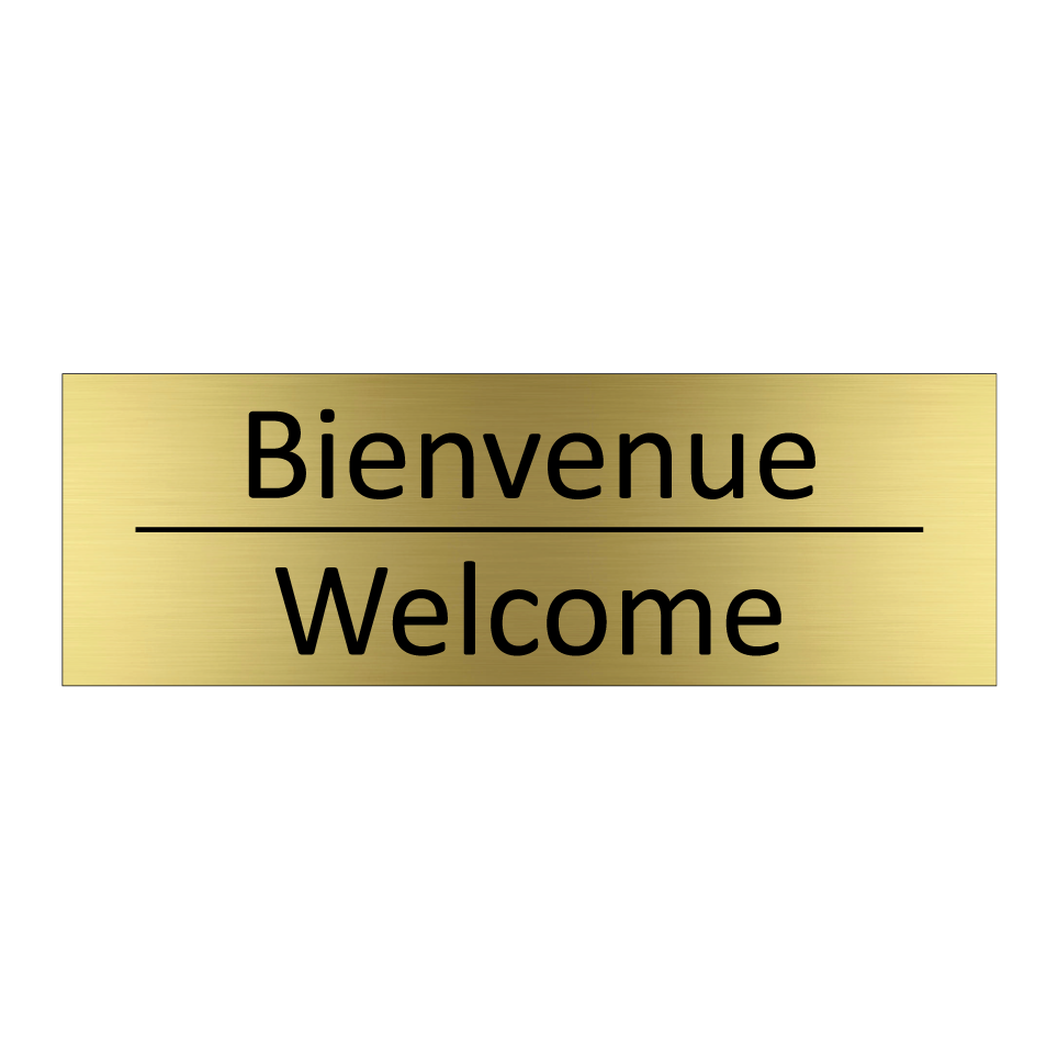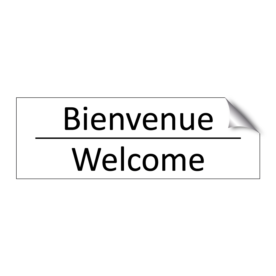 Panneau d'information avec le texte Bienvenue|Welcome en français et en anglais.