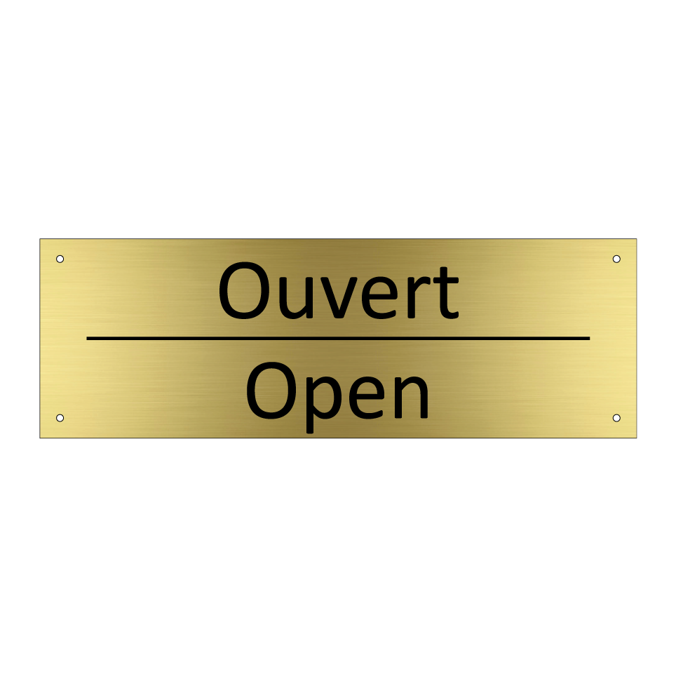 Panneau d'information avec le texte Ouvert|Open en français et en anglais.