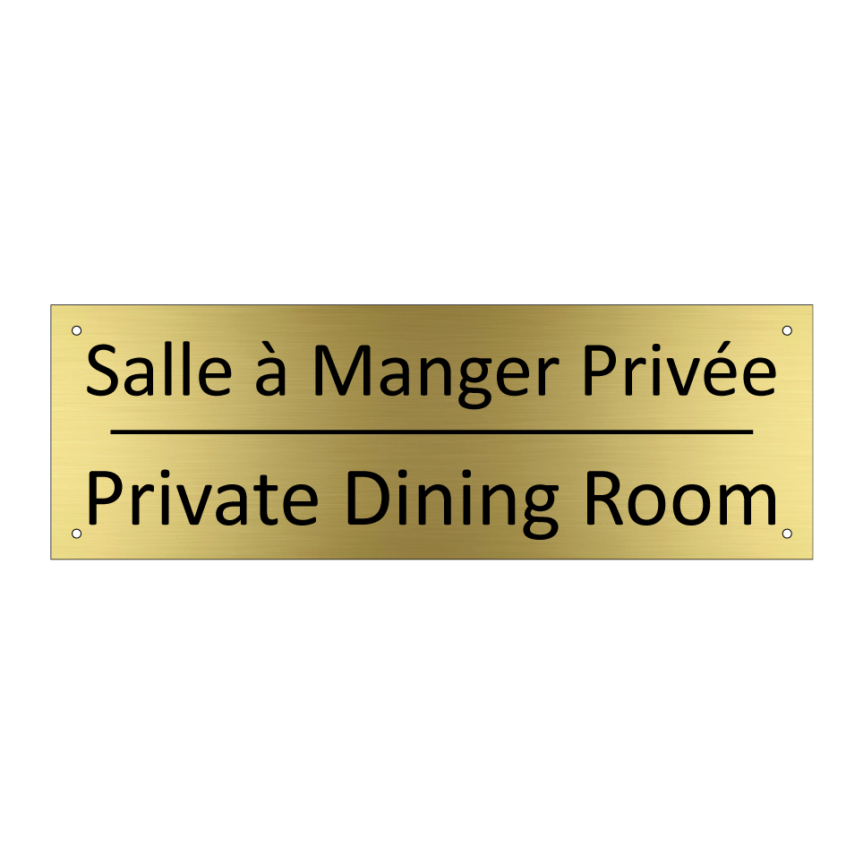 Panneau d'information avec le texte Salle à Manger Privée|Private Dining Room en français et en anglais.