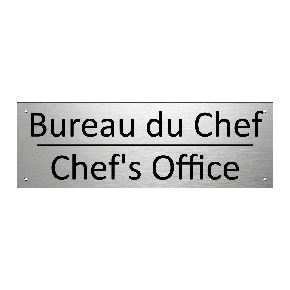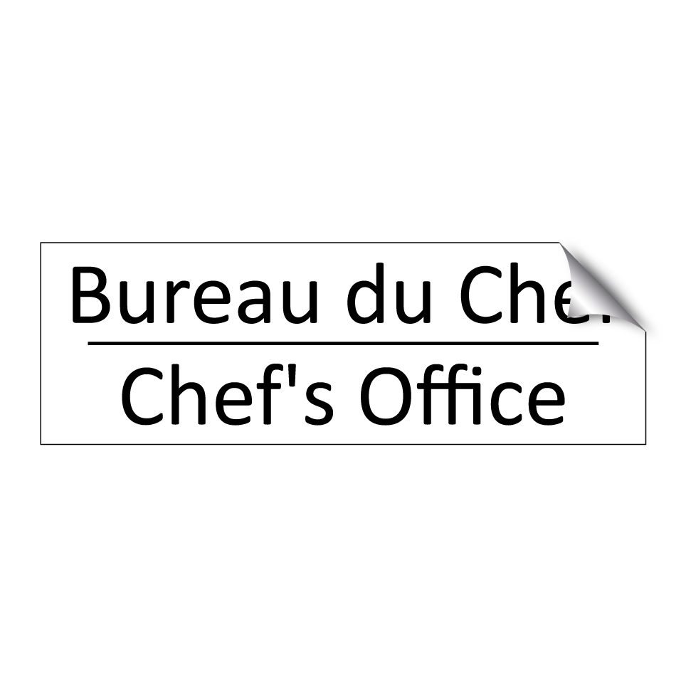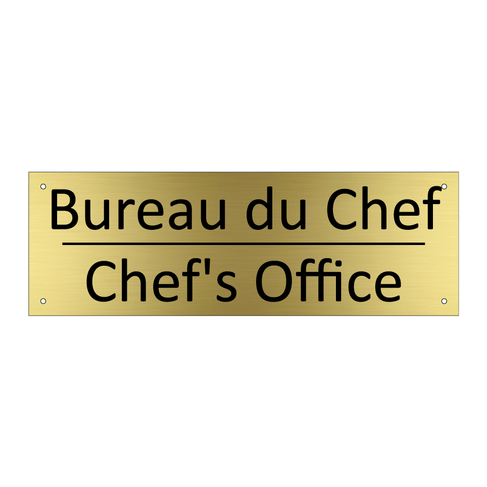 Panneau d'information avec le texte Bureau du Chef|Chef's Office en français et en anglais.
