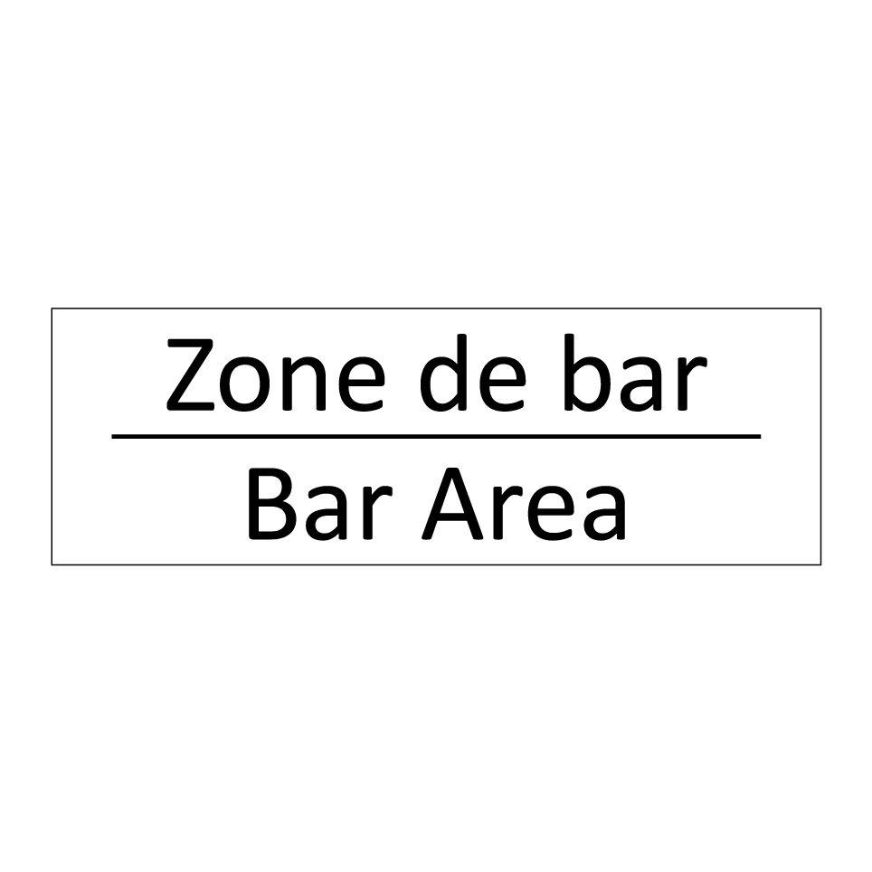 Panneau d'information avec le texte Zone de bar|Bar Area en français et en anglais.