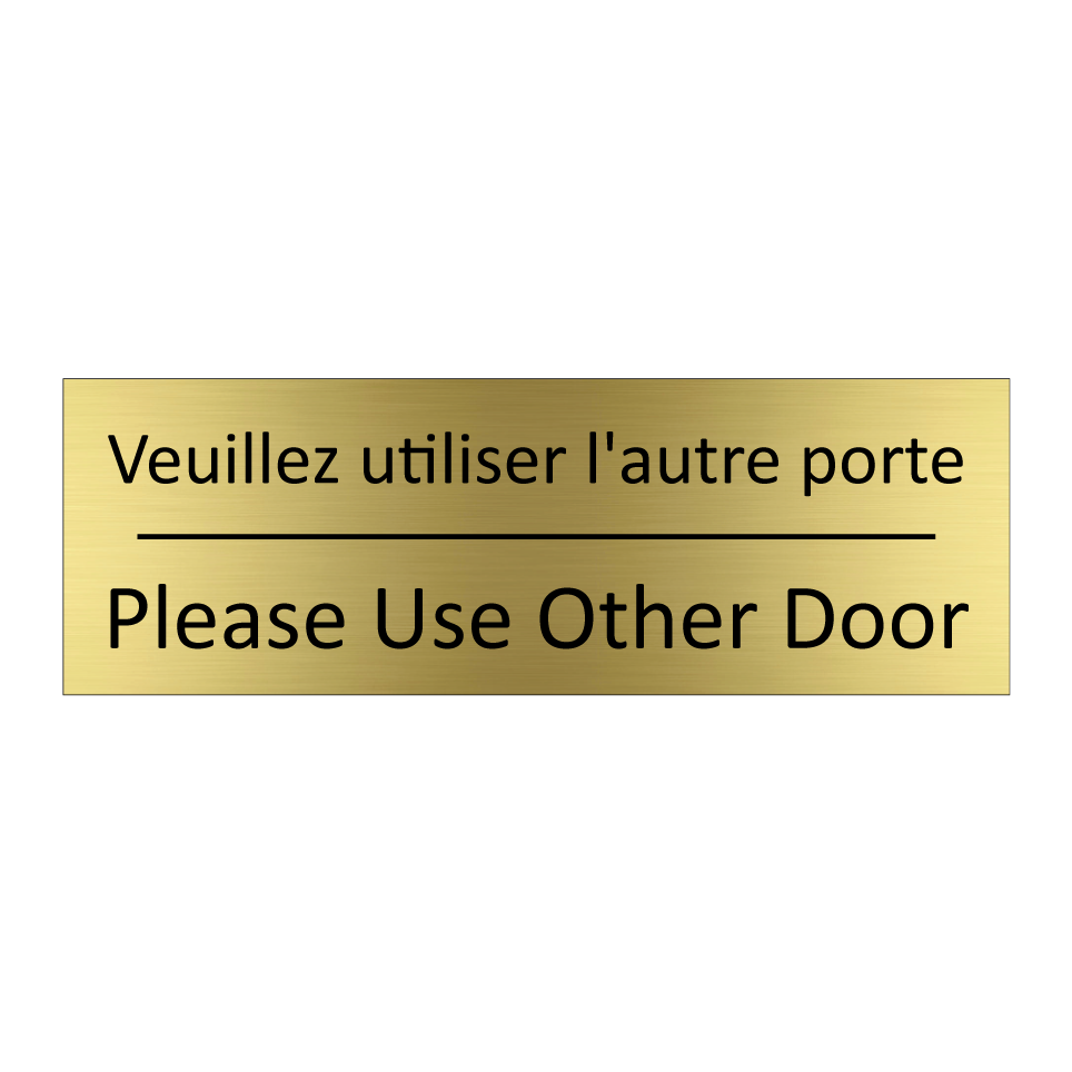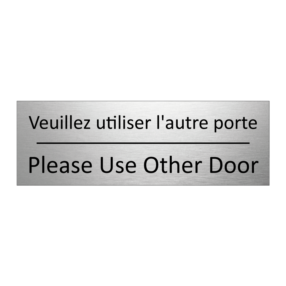 Panneau d'information avec le texte Veuillez utiliser l'autre porte|Please Use Other Door en français et en anglais.