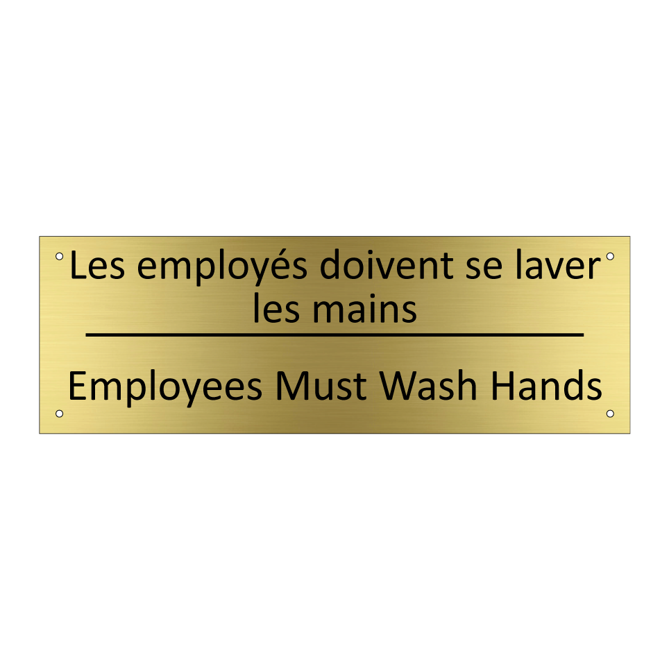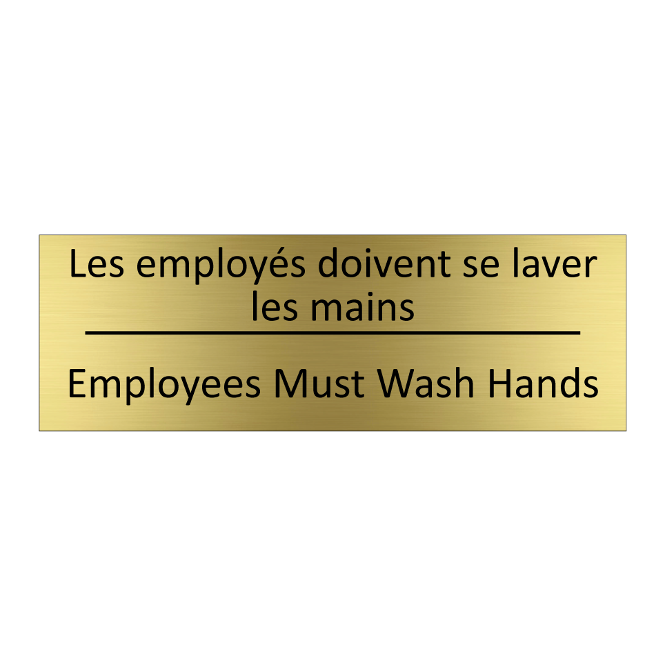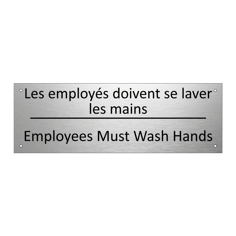 Panneau d'information avec le texte Les employés doivent se laver les mains|Employees Must Wash Hands en français et en anglais.