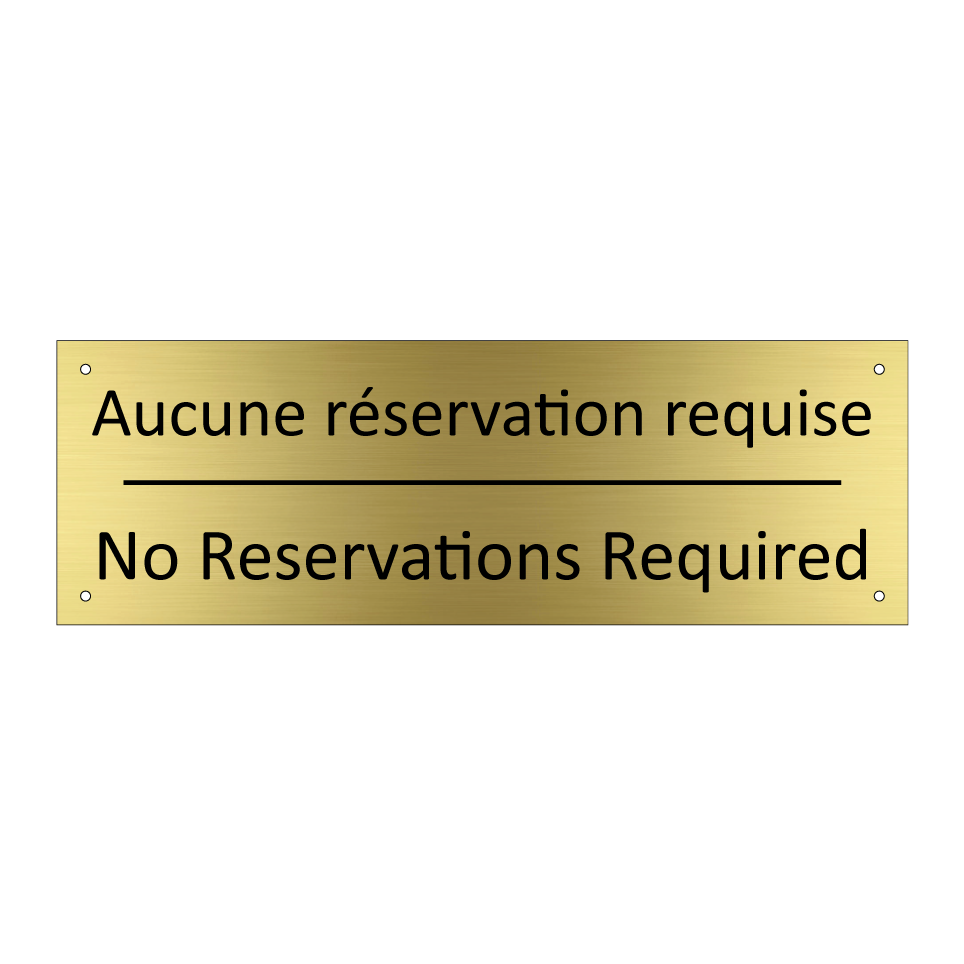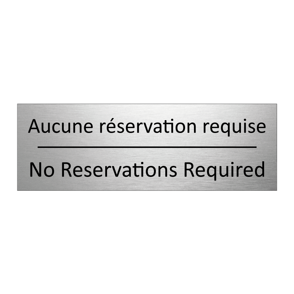 Panneau d'information avec le texte Aucune réservation requise|No Reservations Required en français et en anglais.