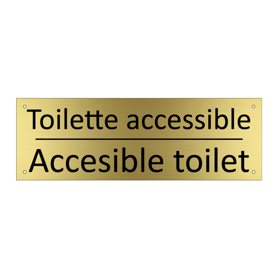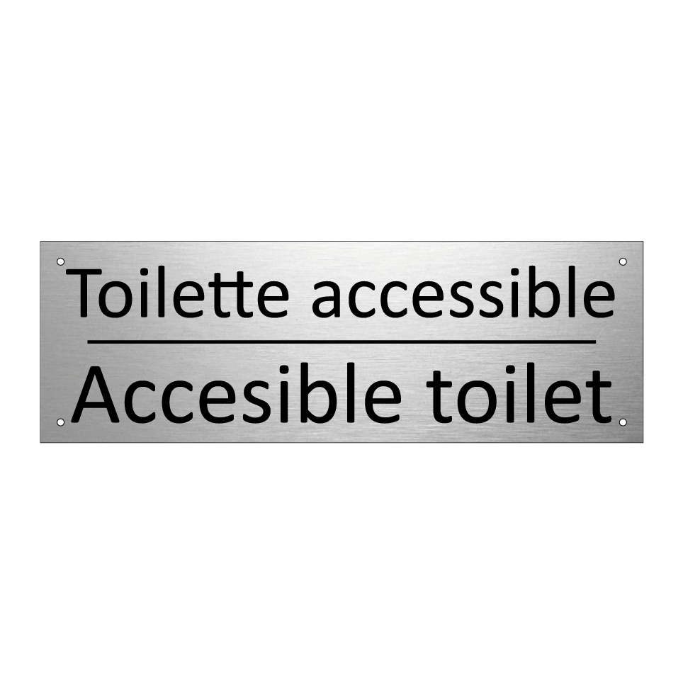 Panneau d'information avec le texte Toilette accessible|Accesible toilet en français et en anglais.
