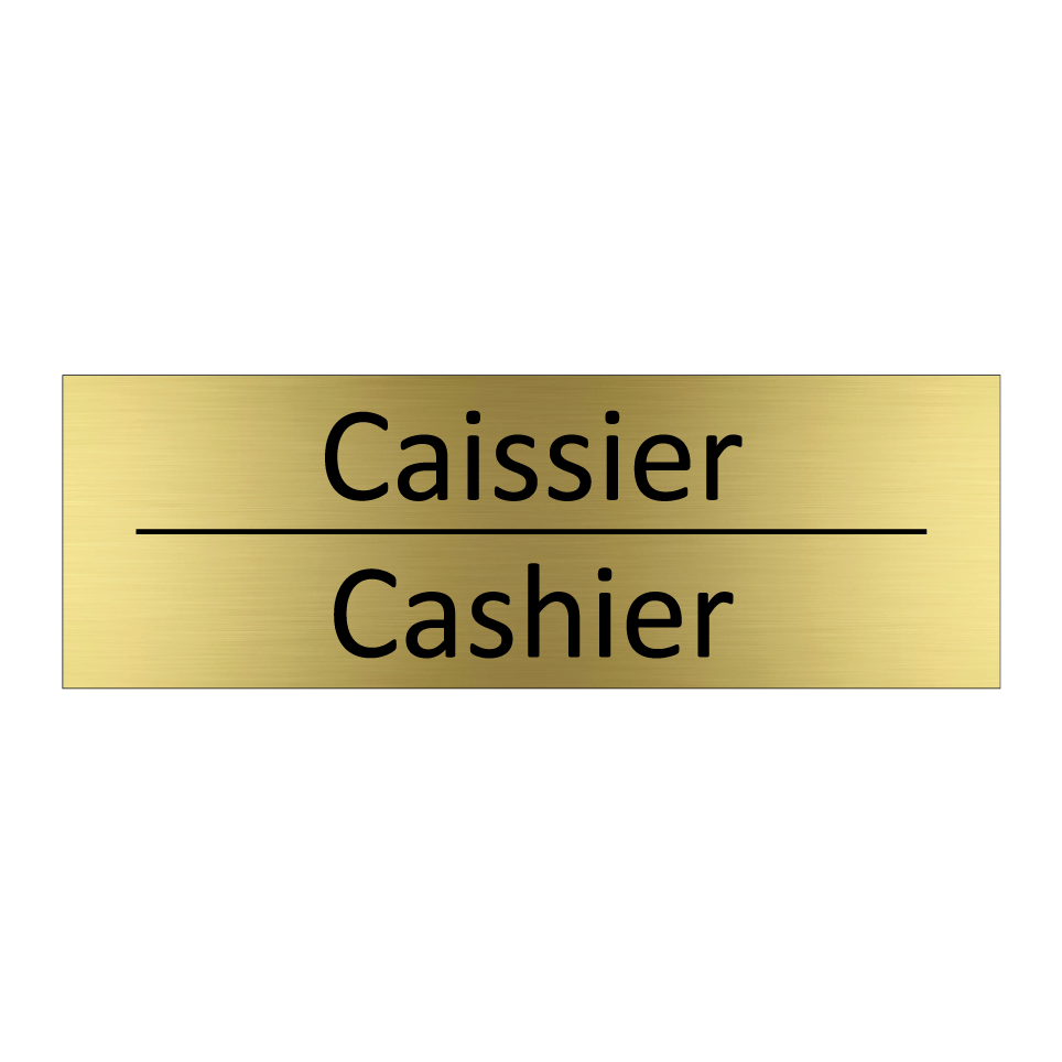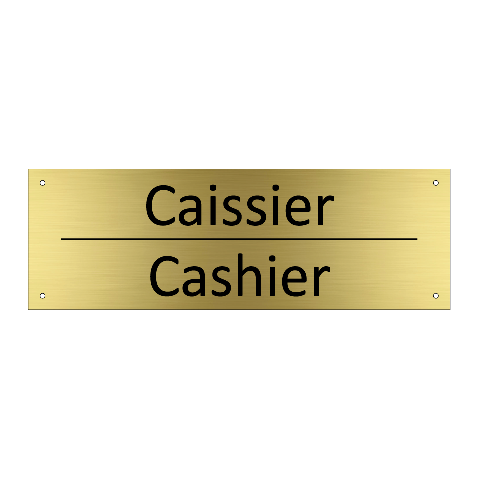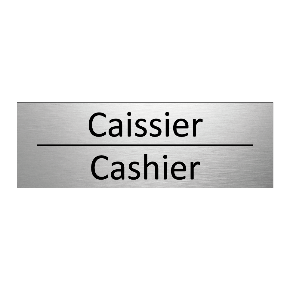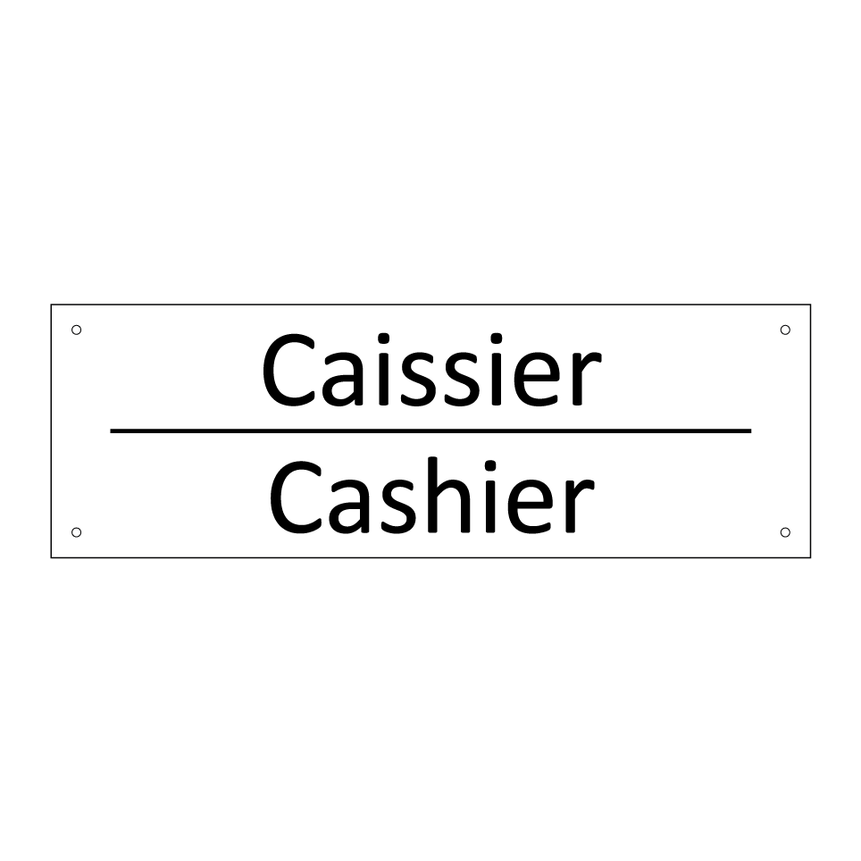 Panneau d'information avec le texte Caissier|Cashier en français et en anglais.