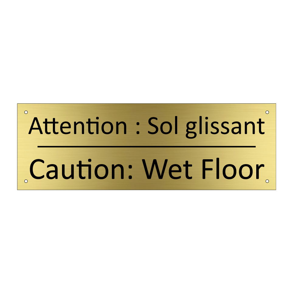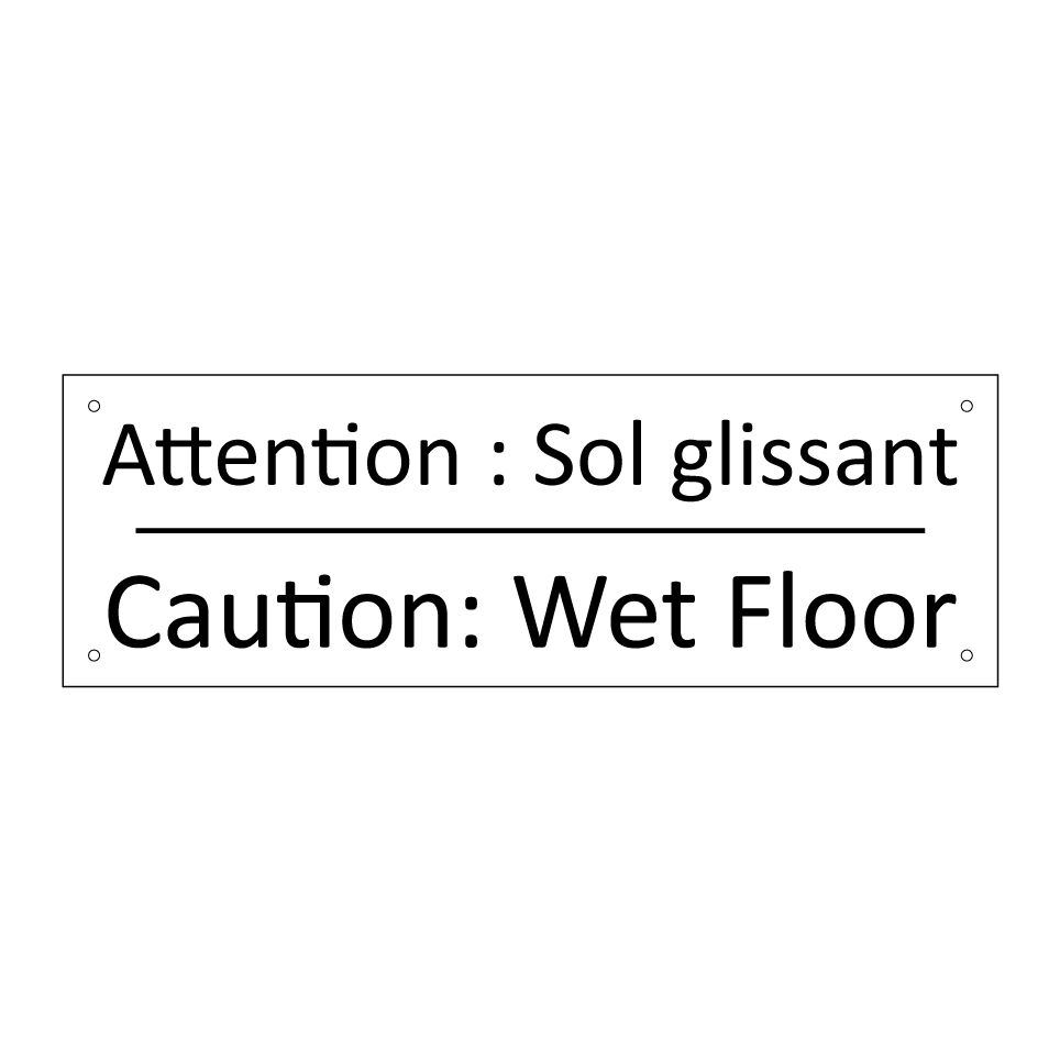 Panneau d'information avec le texte Attention : Sol glissant|Caution: Wet Floor en français et en anglais.