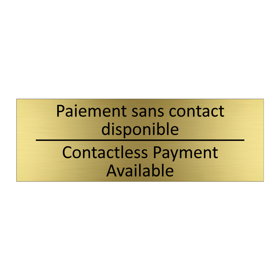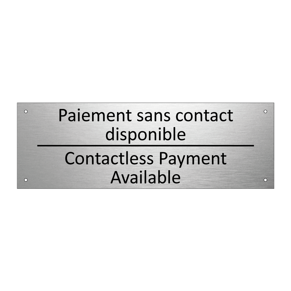Panneau d'information avec le texte Paiement sans contact disponible|Contactless Payment Available en français et en anglais.