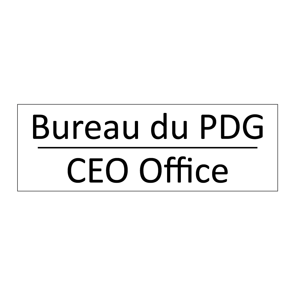 Panneau d'information avec le texte Bureau du PDG|CEO Office en français et en anglais.
