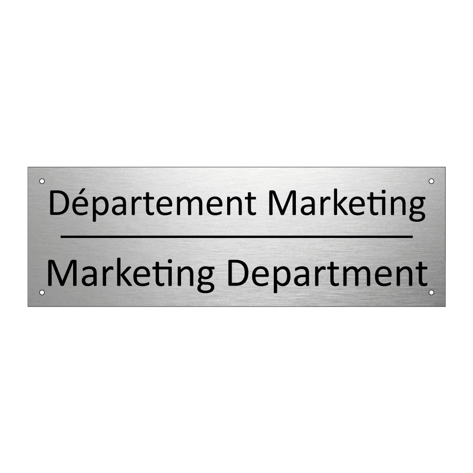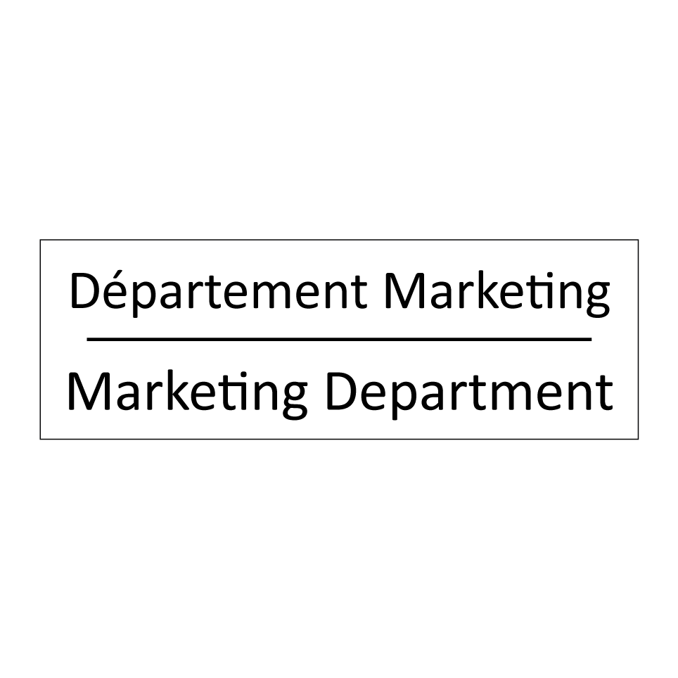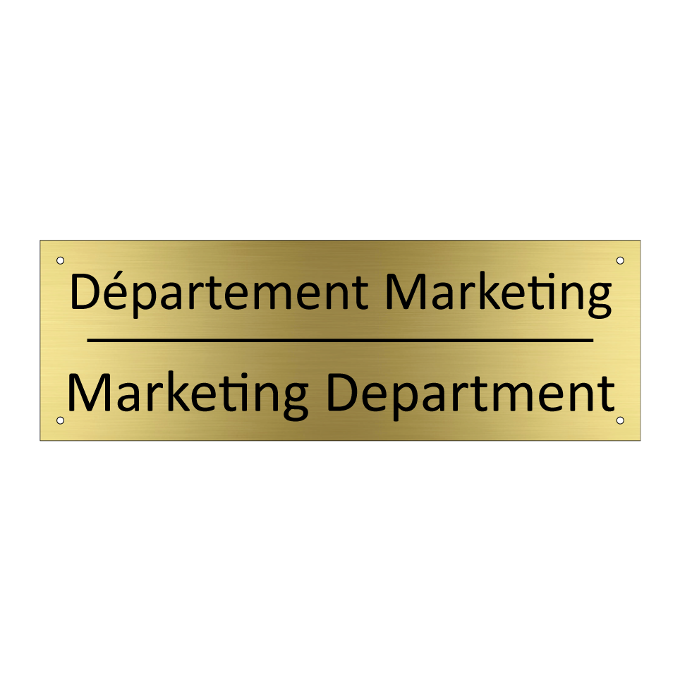 Panneau d'information avec le texte Département Marketing|Marketing Department en français et en anglais.
