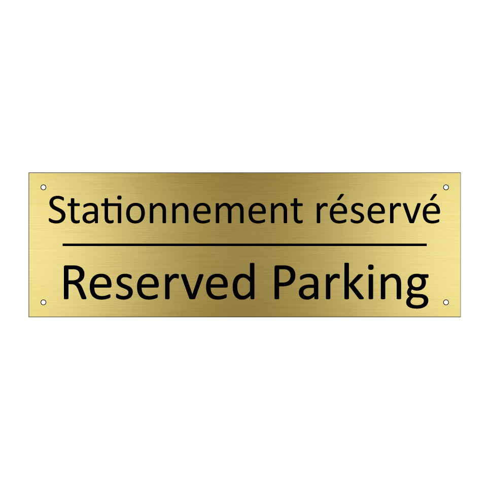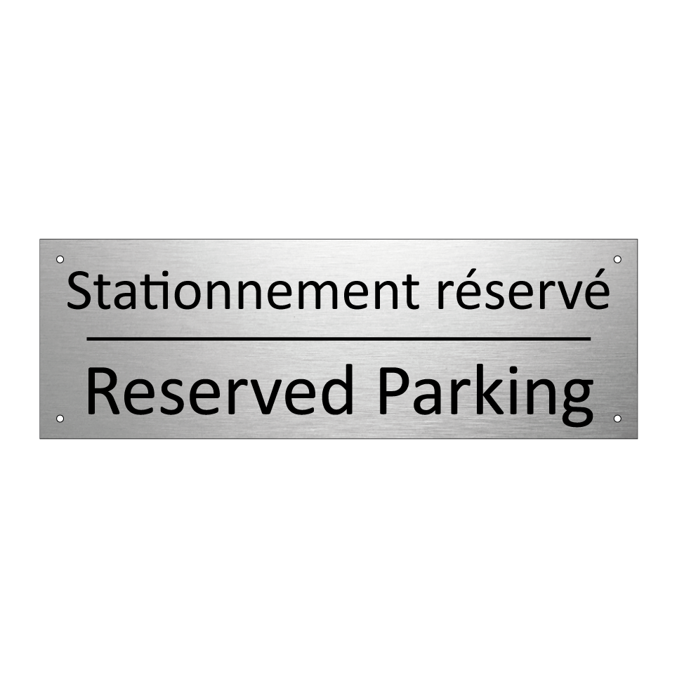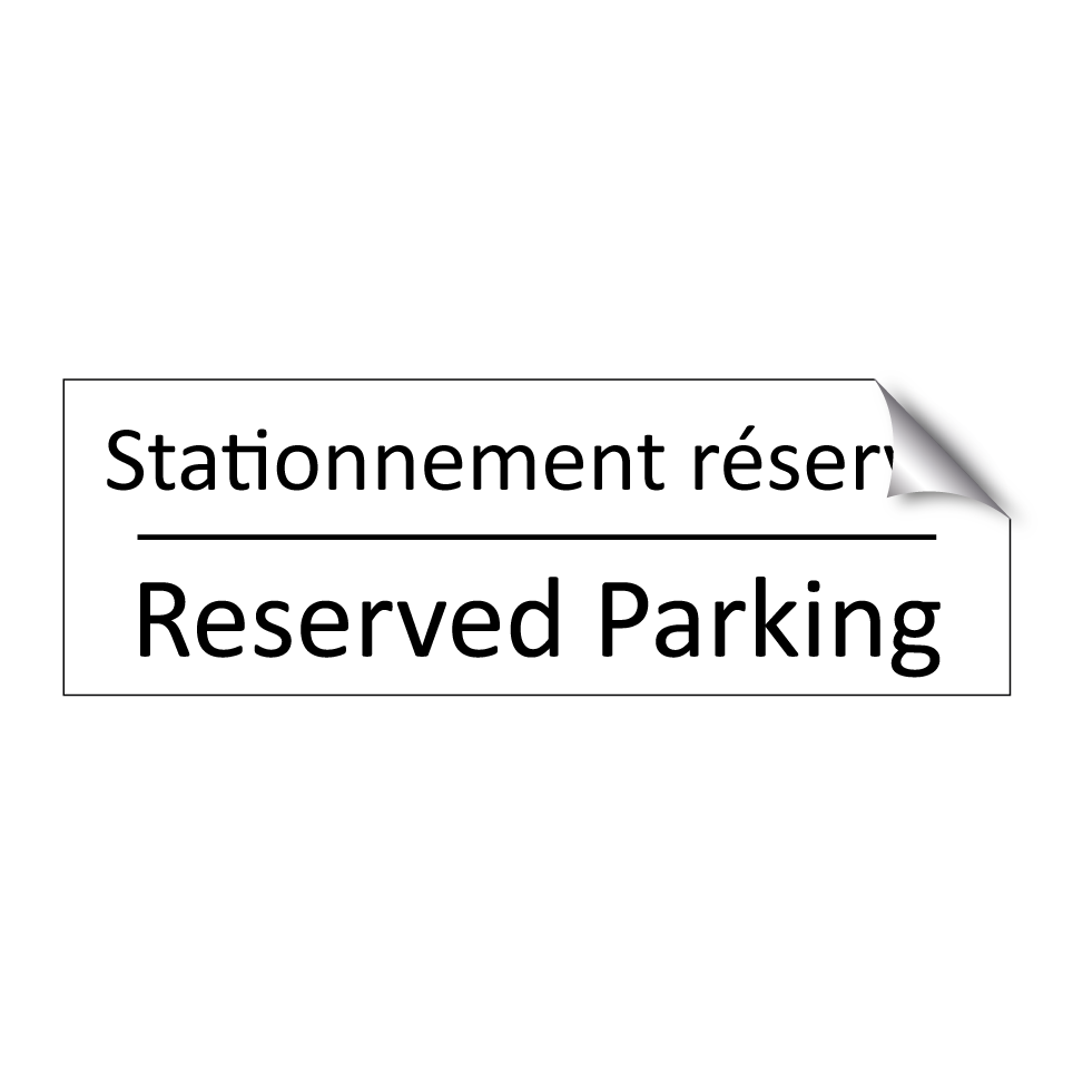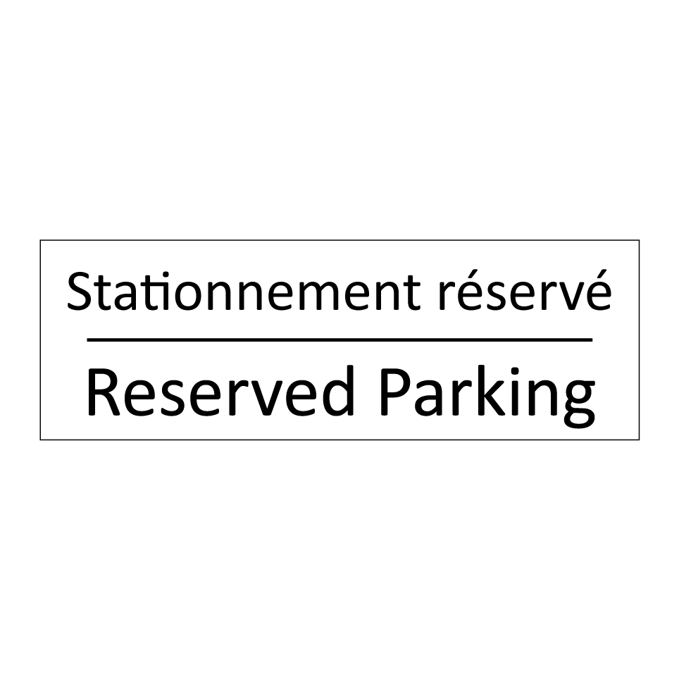 Panneau d'information avec le texte Stationnement réservé|Reserved Parking en français et en anglais.