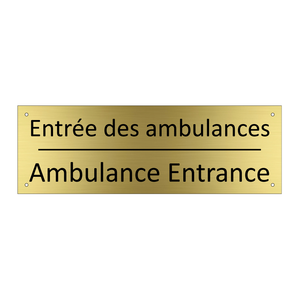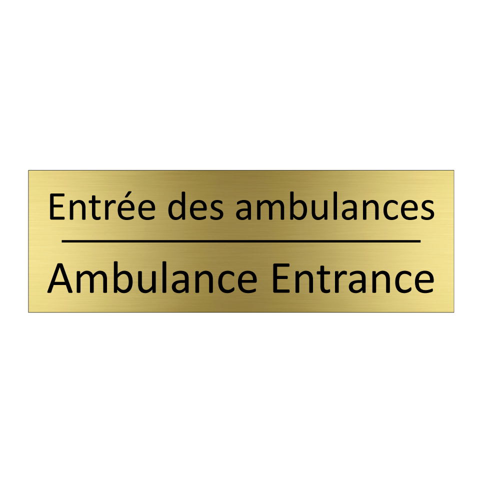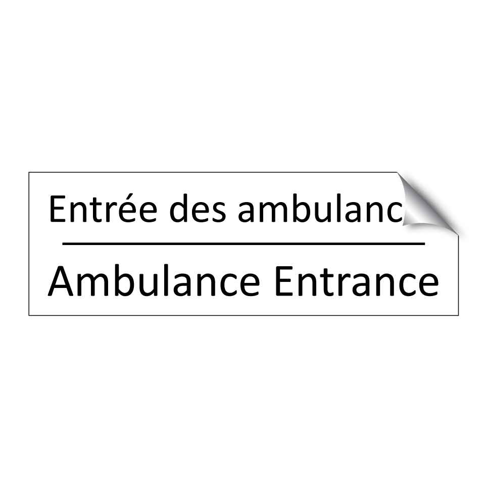 Panneau d'information avec le texte Entrée des ambulances|Ambulance Entrance en français et en anglais.