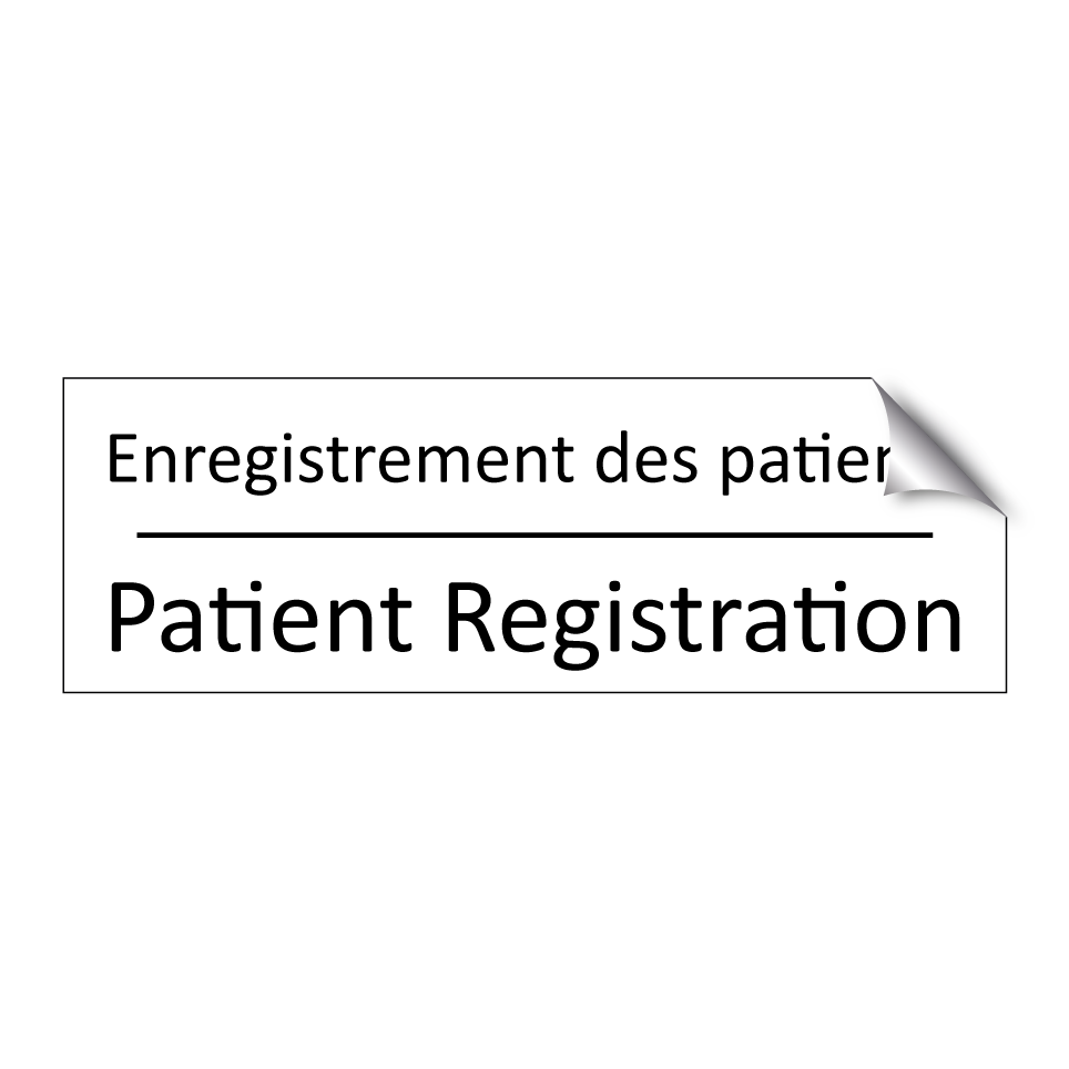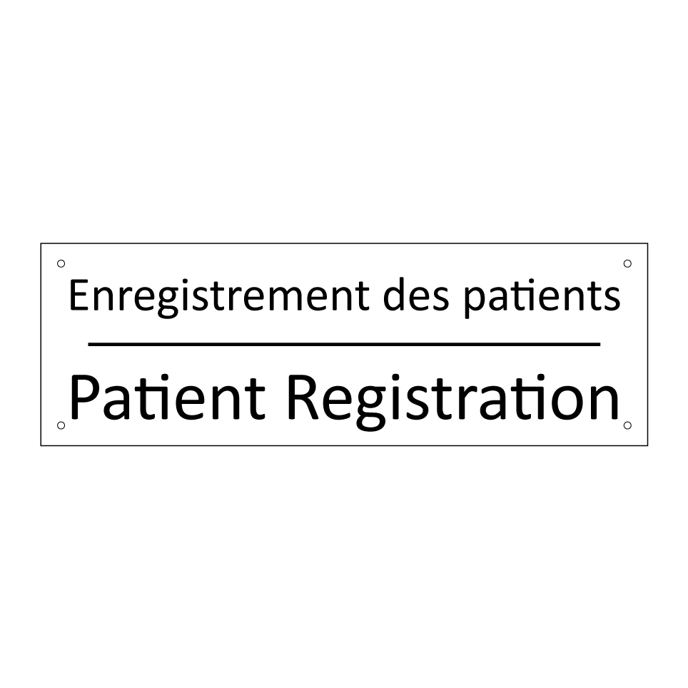 Panneau d'information avec le texte Enregistrement des patients|Patient Registration en français et en anglais.