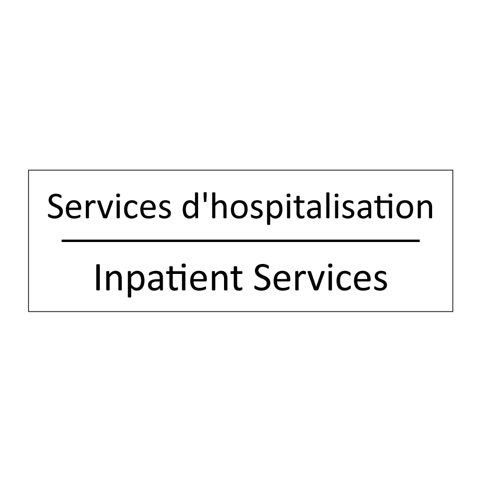 Panneau d'information avec le texte Services d'hospitalisation|Inpatient Services en français et en anglais.