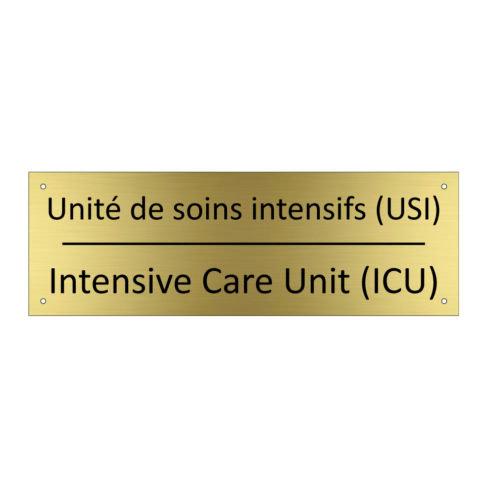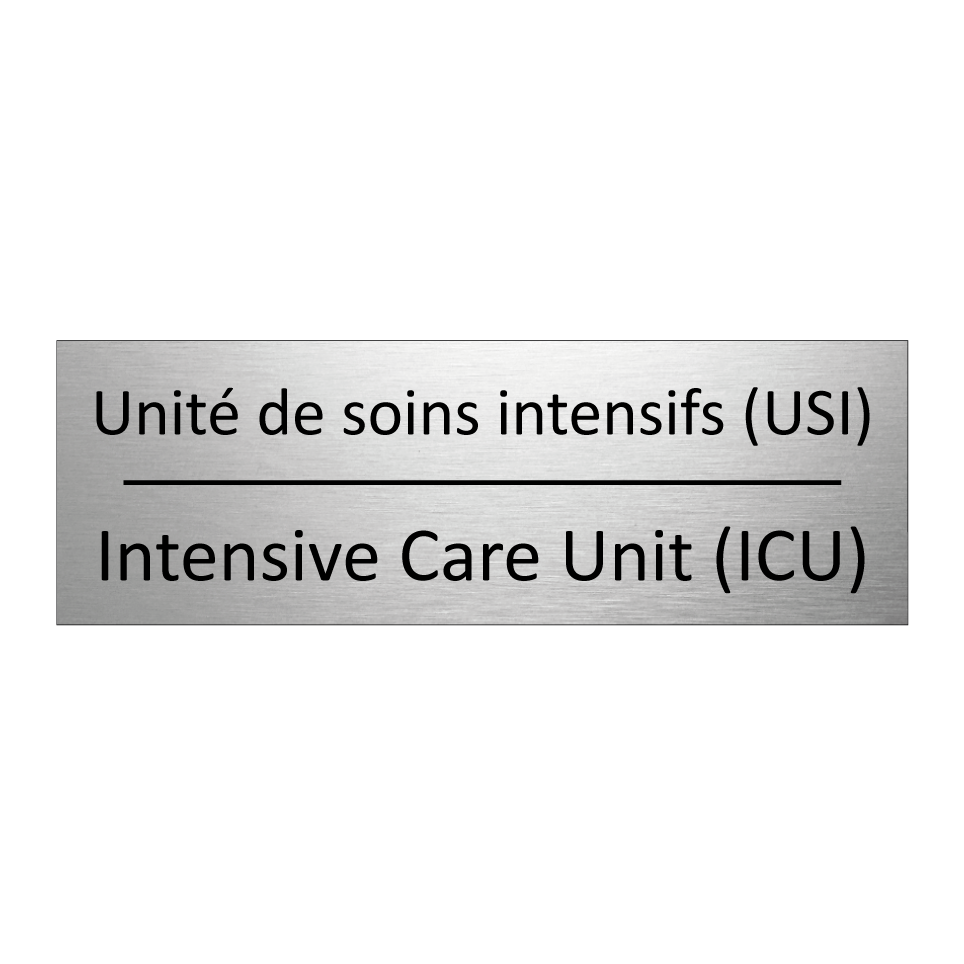 Panneau d'information avec le texte Unité de soins intensifs (USI)|Intensive Care Unit (ICU) en français et en anglais.