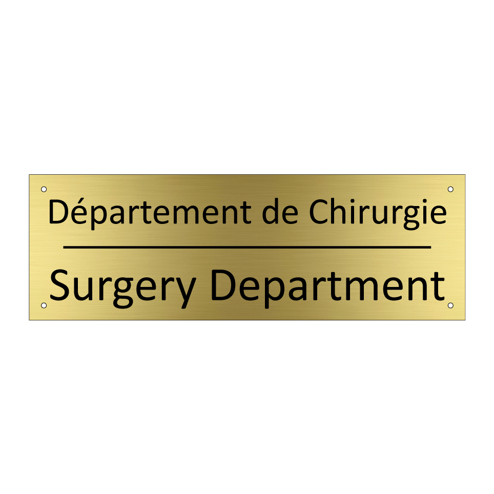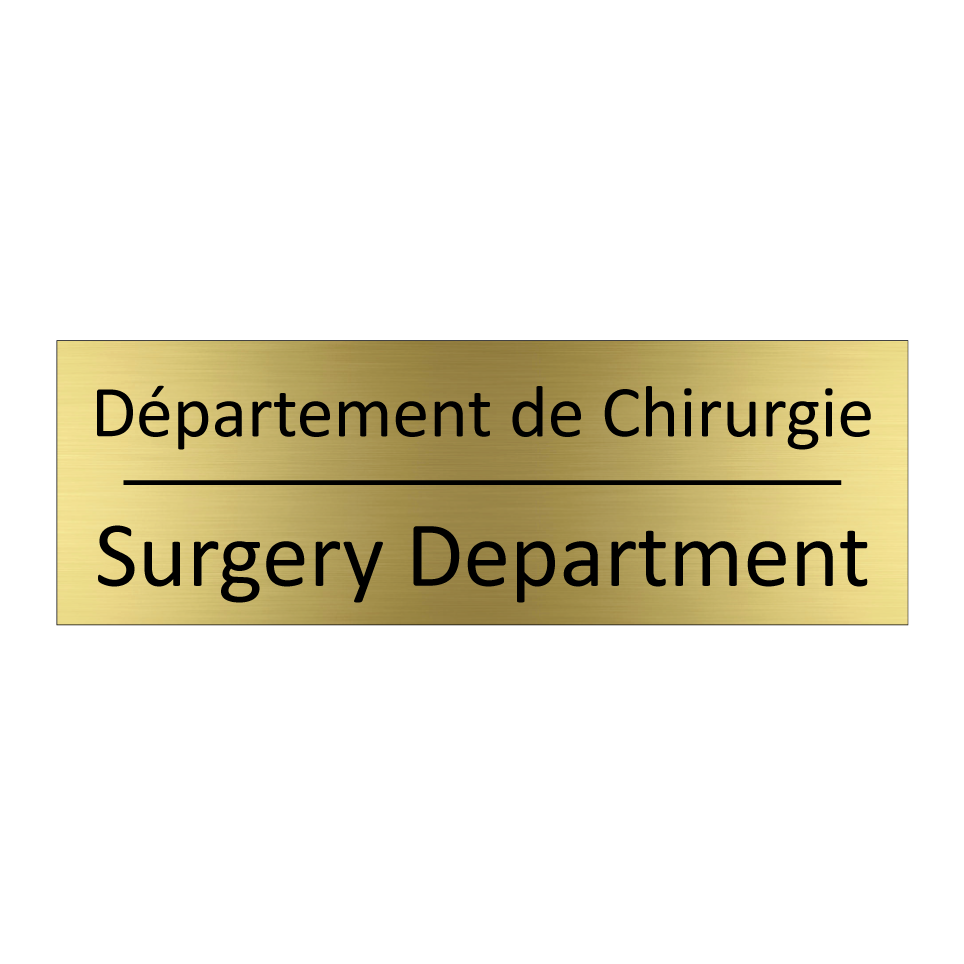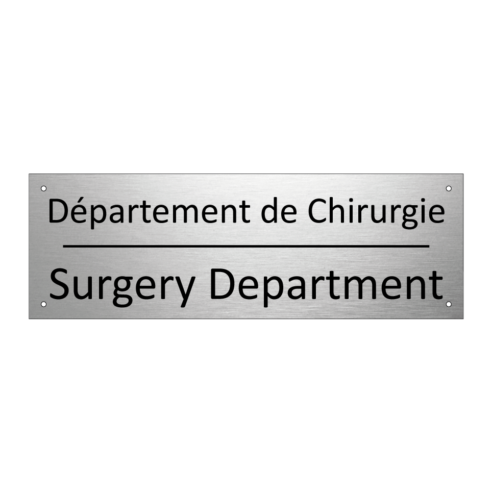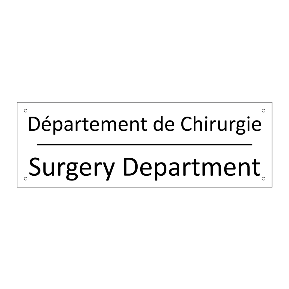 Panneau d'information avec le texte Département de Chirurgie|Surgery Department en français et en anglais.