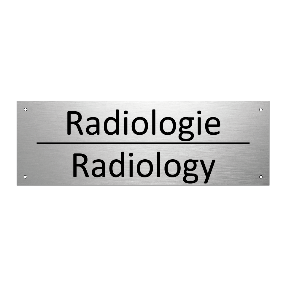 Panneau d'information avec le texte Radiologie|Radiology en français et en anglais.