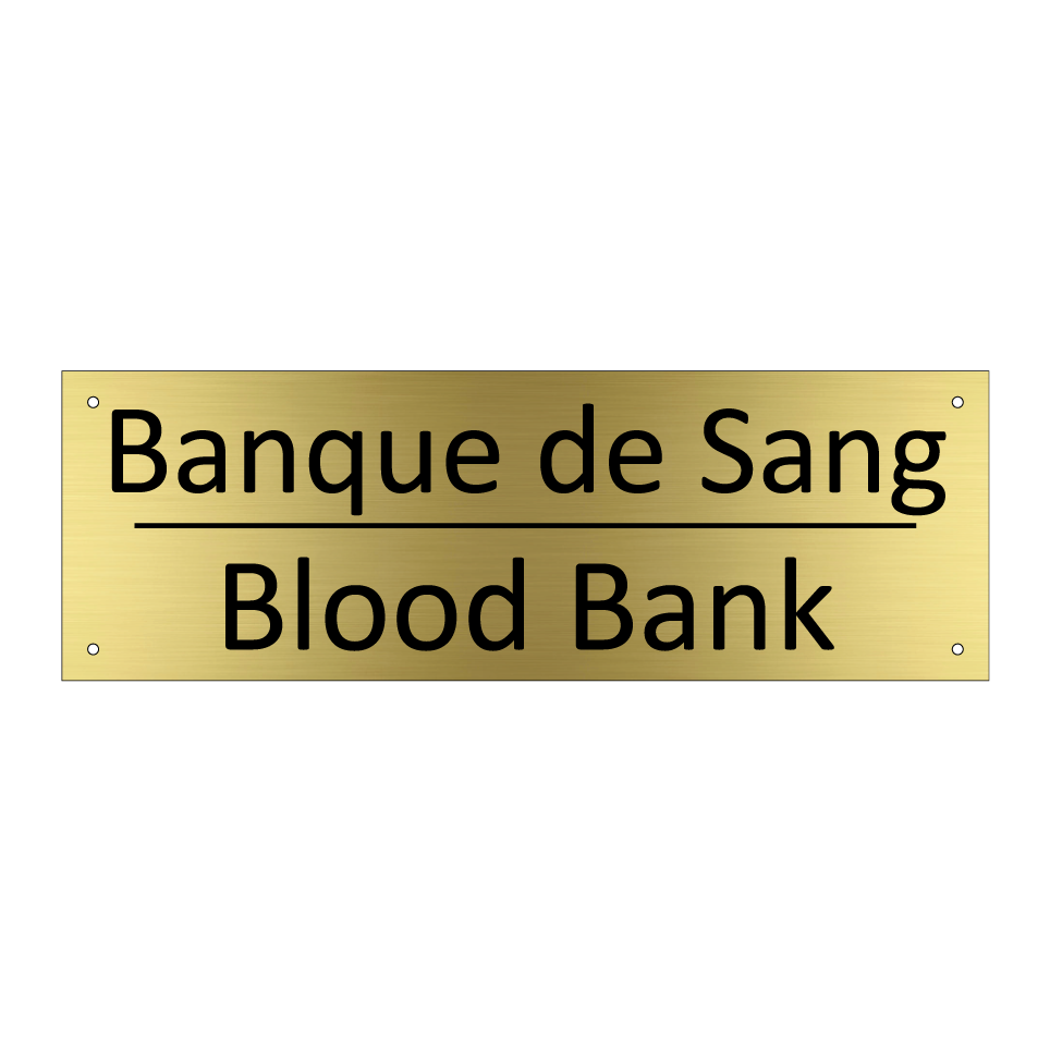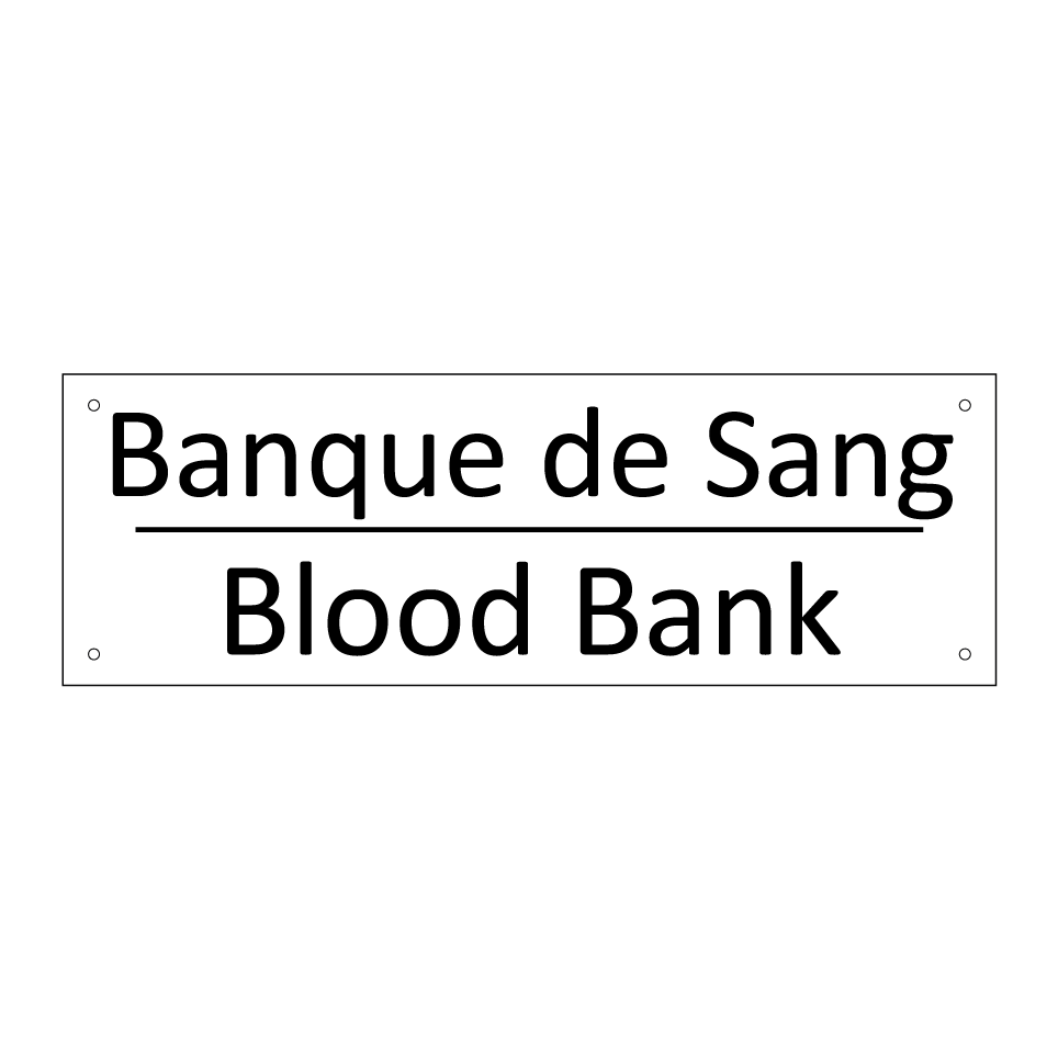 Panneau d'information avec le texte Banque de Sang|Blood Bank en français et en anglais.