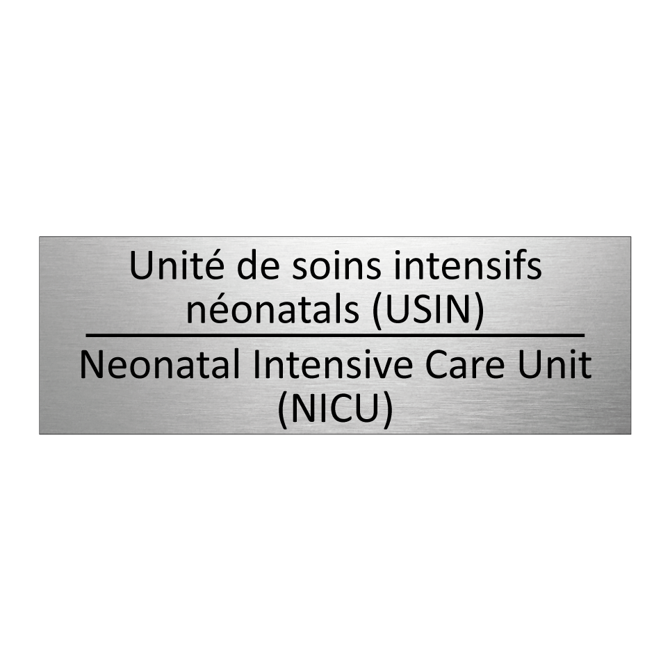 Panneau d'information avec le texte Unité de soins intensifs néonatals (USIN)|Neonatal Intensive Care Unit (NICU) en français et en anglais.