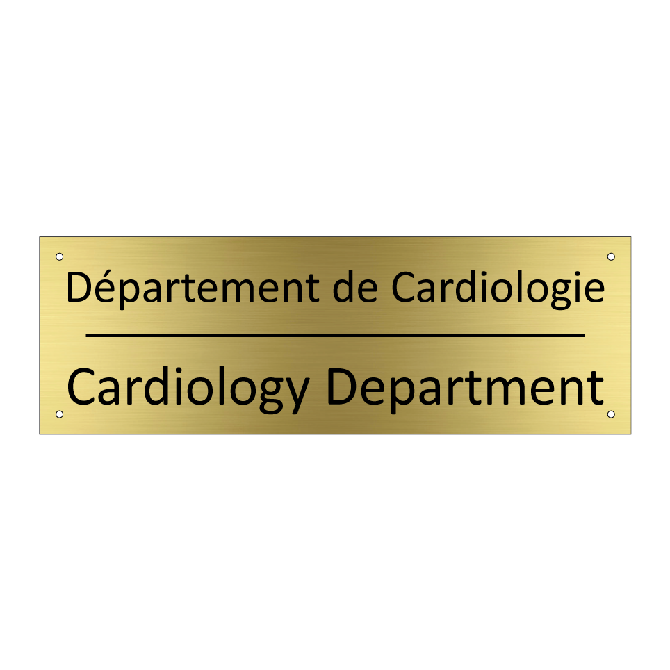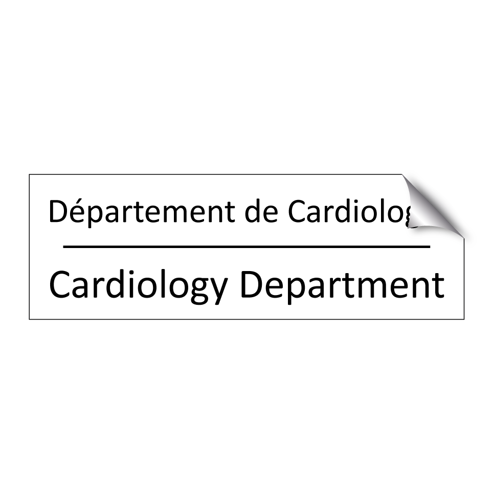 Panneau d'information avec le texte Département de Cardiologie|Cardiology Department en français et en anglais.