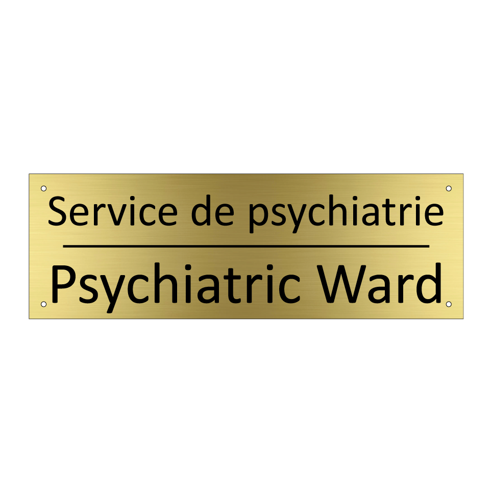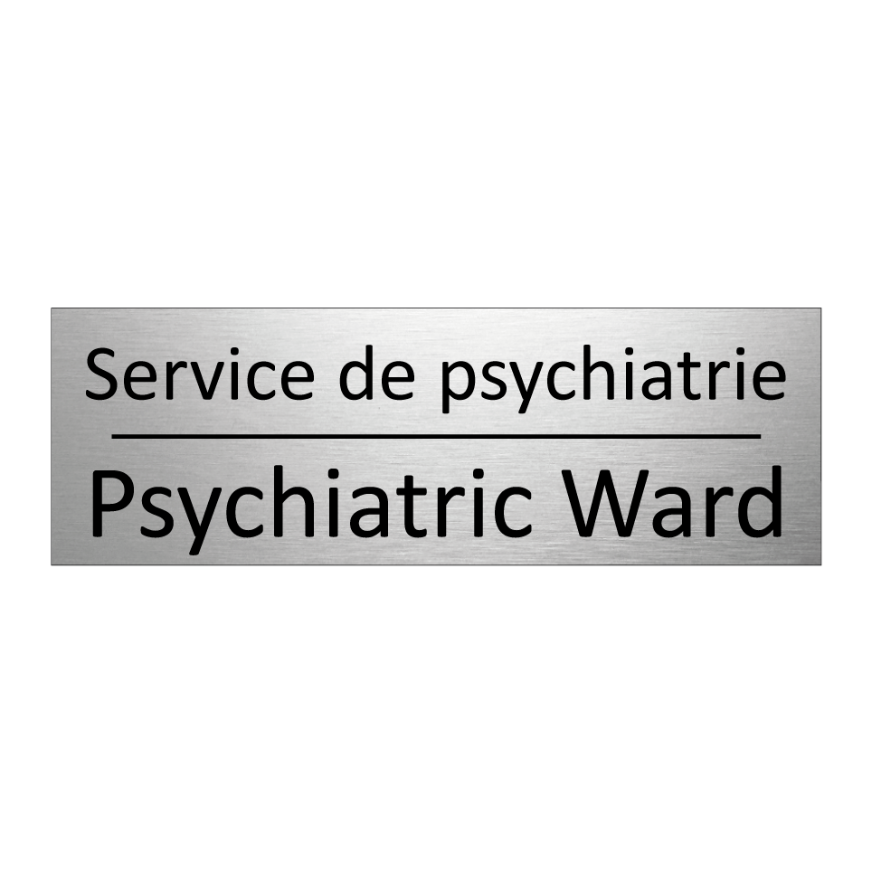 Panneau d'information avec le texte Service de psychiatrie|Psychiatric Ward en français et en anglais.