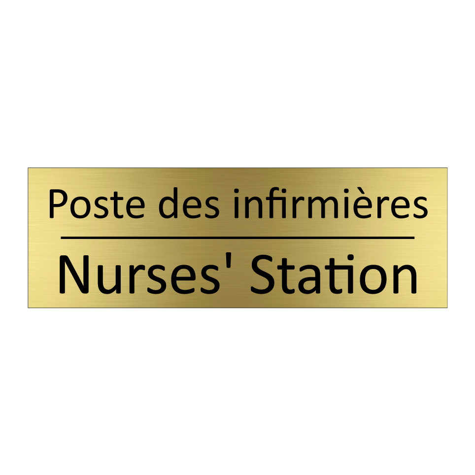 Panneau d'information avec le texte Poste des infirmières|Nurses' Station en français et en anglais.