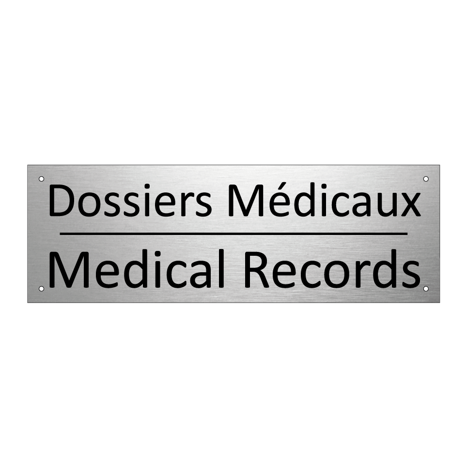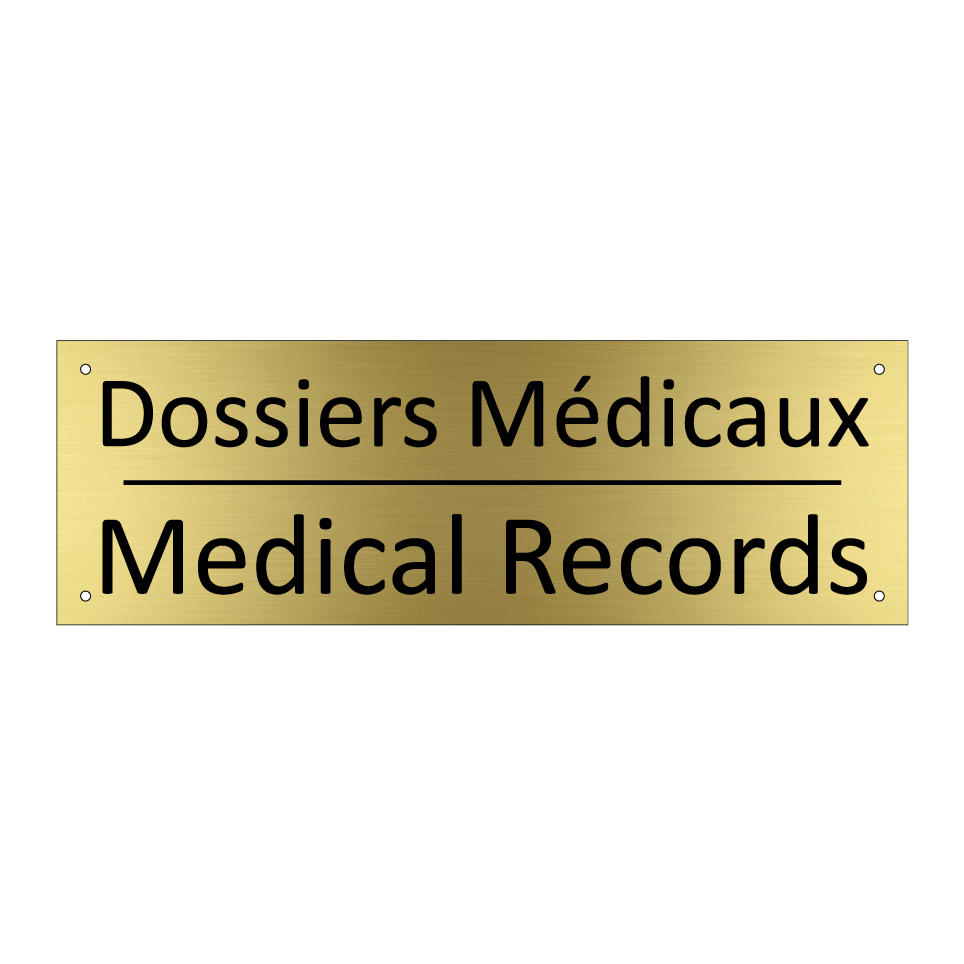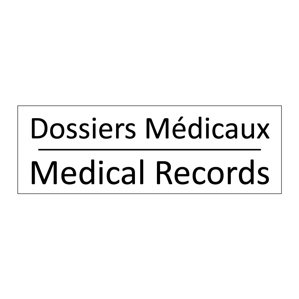Panneau d'information avec le texte Dossiers Médicaux|Medical Records en français et en anglais.