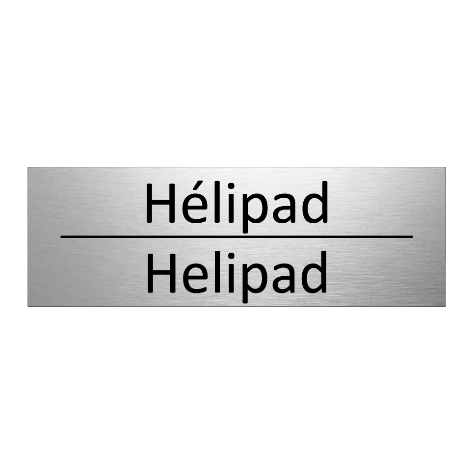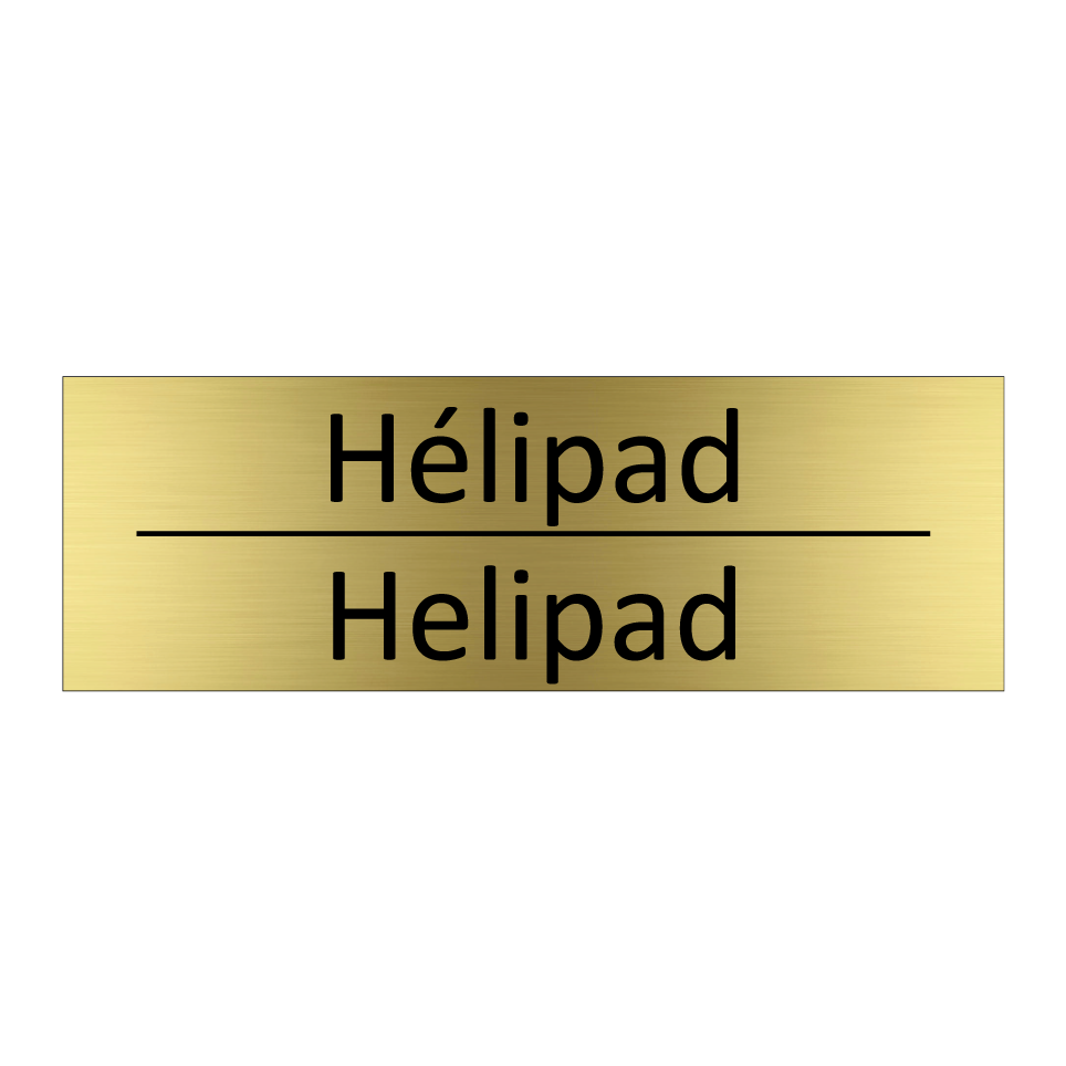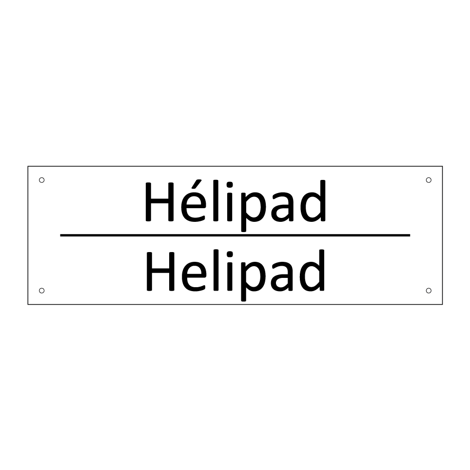 Panneau d'information avec le texte Hélipad|Helipad en français et en anglais.