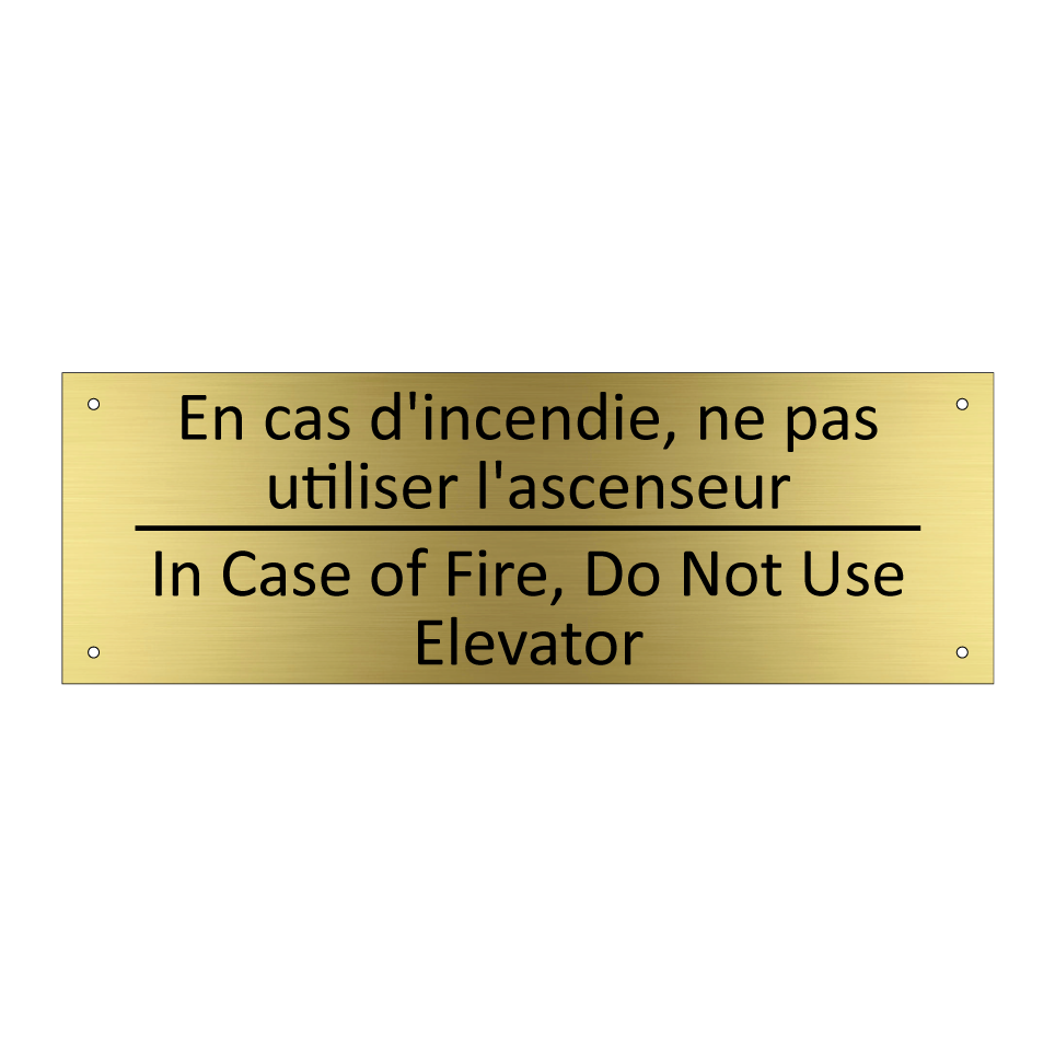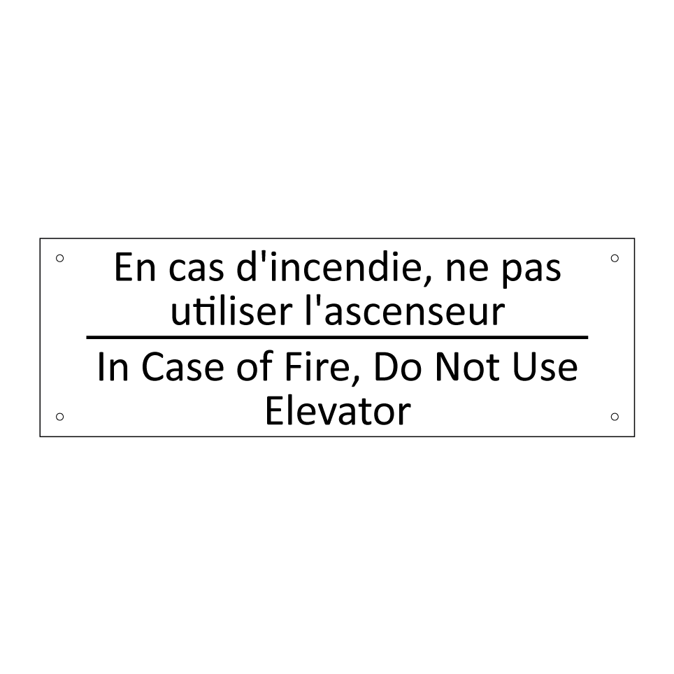 Panneau d'information avec le texte En cas d'incendie, ne pas utiliser l'ascenseur|In Case of Fire, Do Not Use Elevator en français et en anglais.