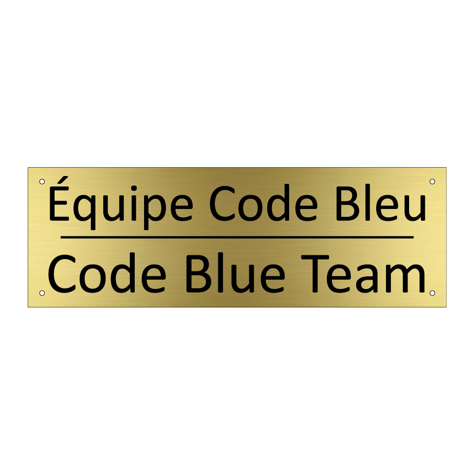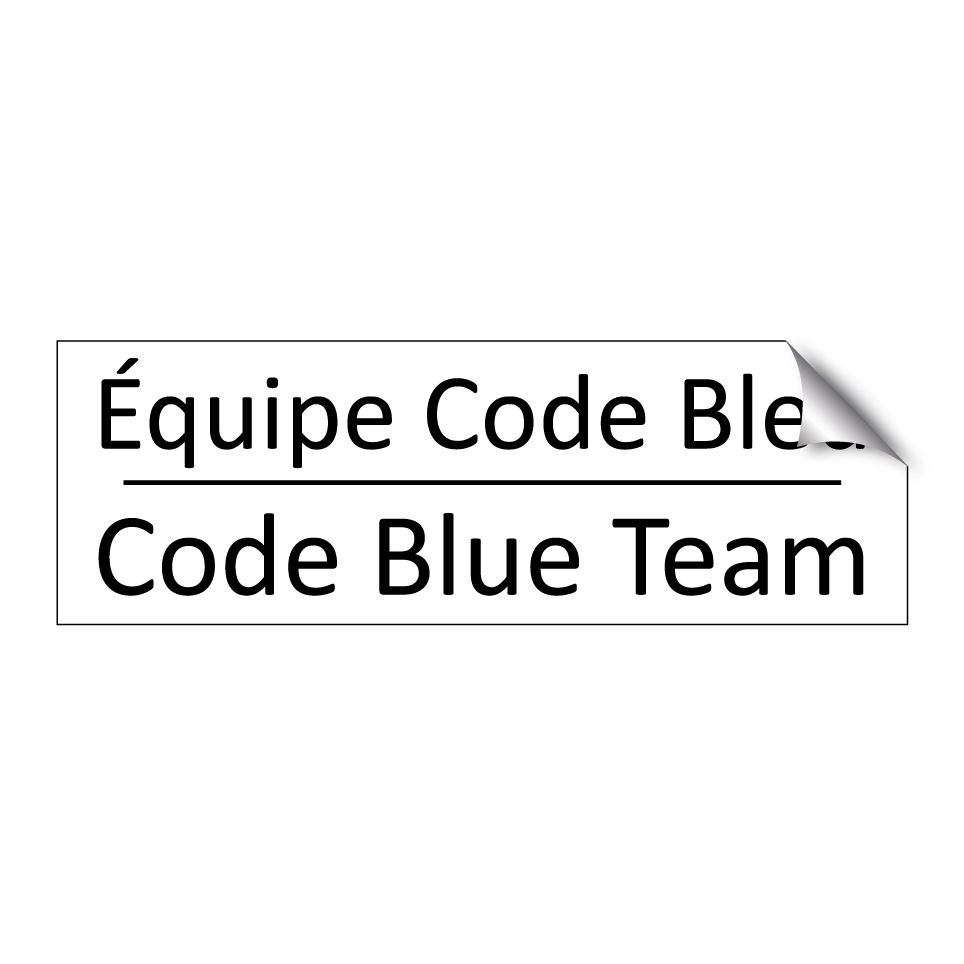 Panneau d'information avec le texte Équipe Code Bleu|Code Blue Team en français et en anglais.