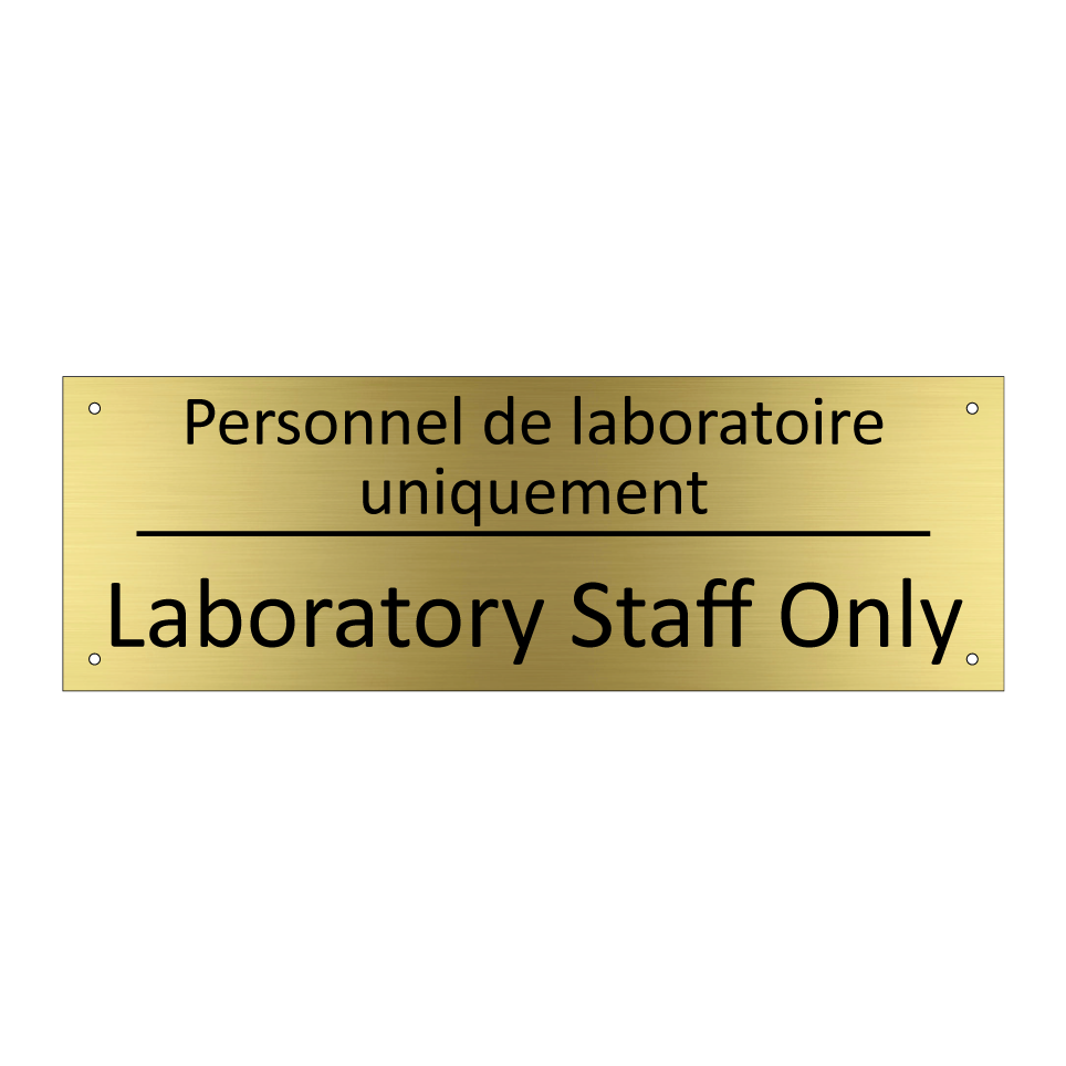 Panneau d'information avec le texte Personnel de laboratoire uniquement|Laboratory Staff Only en français et en anglais.
