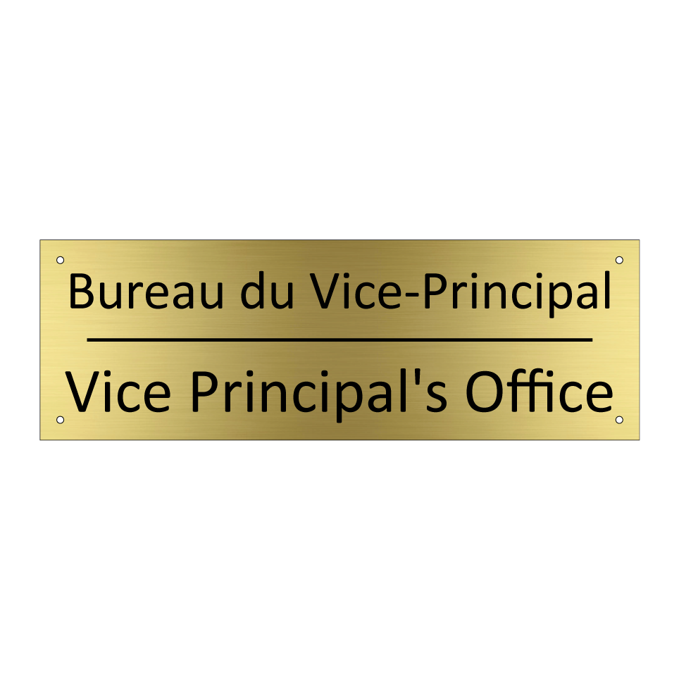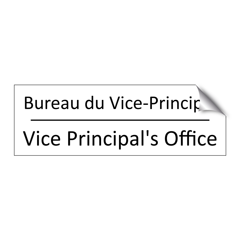 Panneau d'information avec le texte Bureau du Vice-Principal|Vice Principal's Office en français et en anglais.